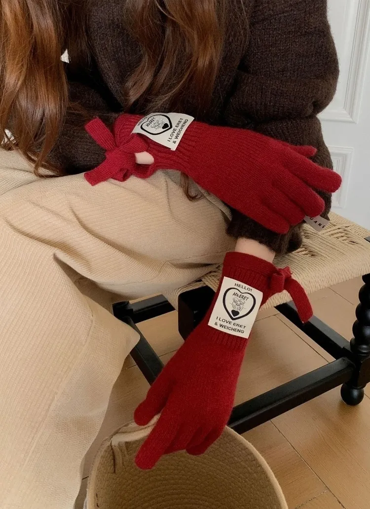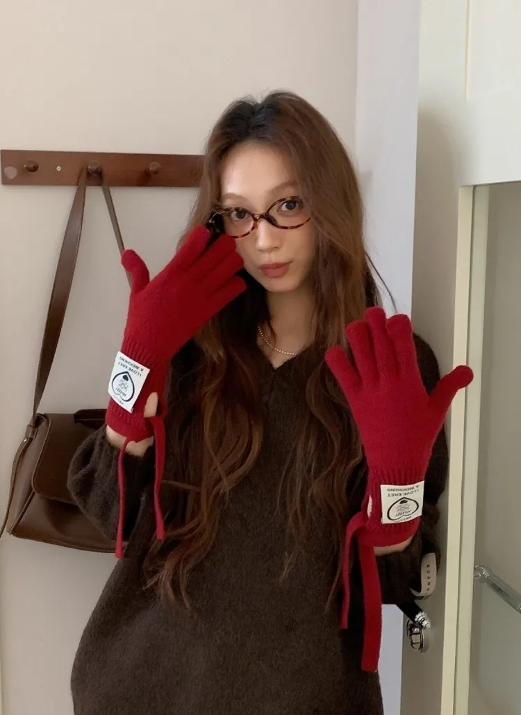 ウール混リボンパッチフィンガーホール手袋・B1947992
