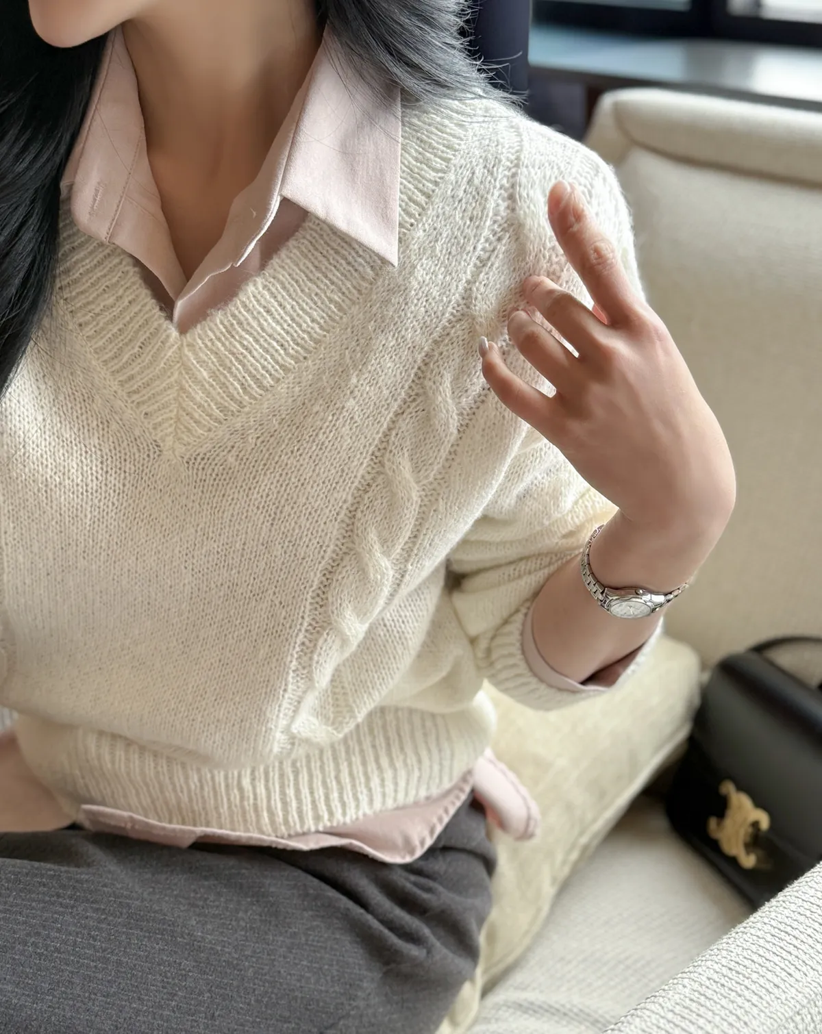 着用 : アイボリー / FREE,ライトグレー / FREE