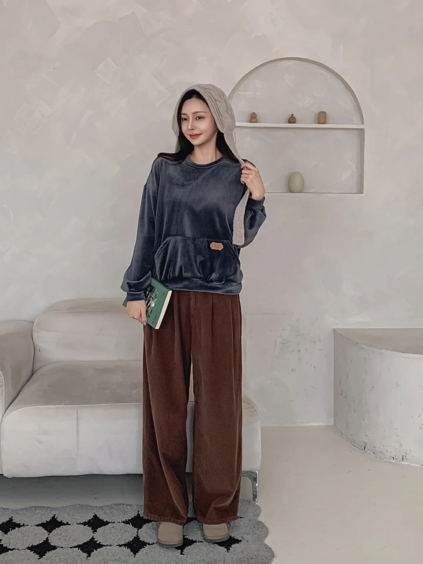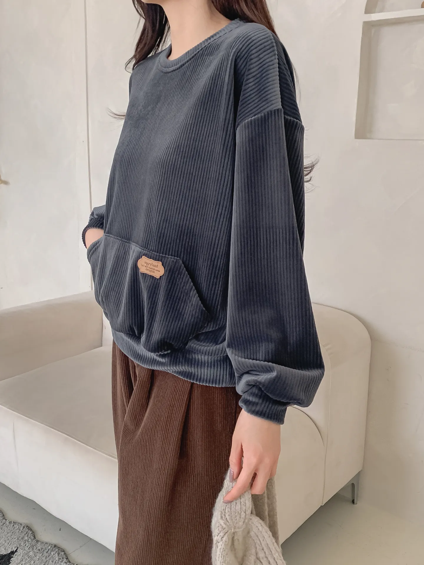 ベロアラウンドネックルーズ長袖スウェット・B022757