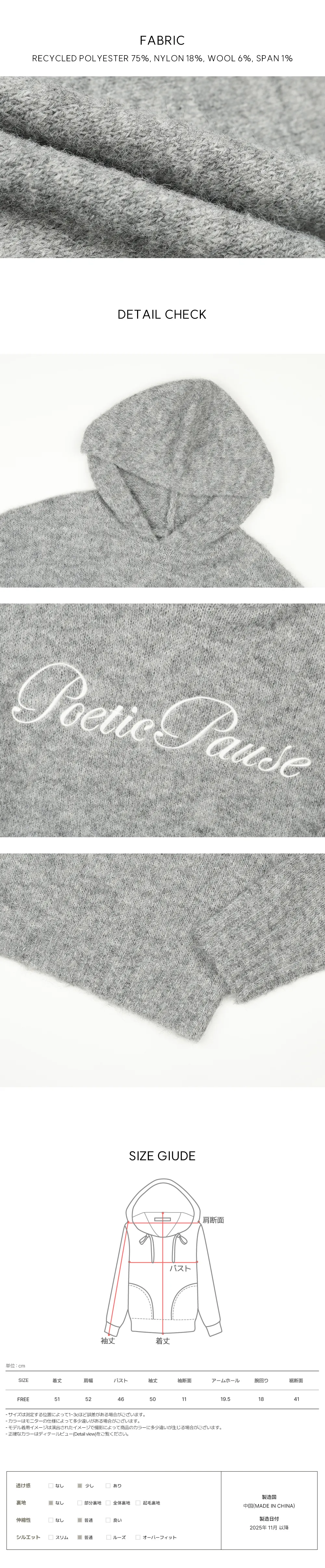 着用 : アイボリー / FREE,グレー / FREE