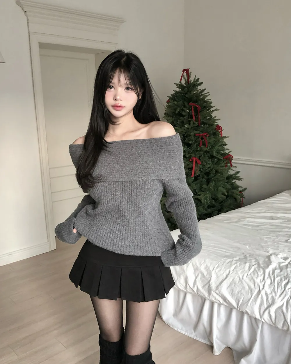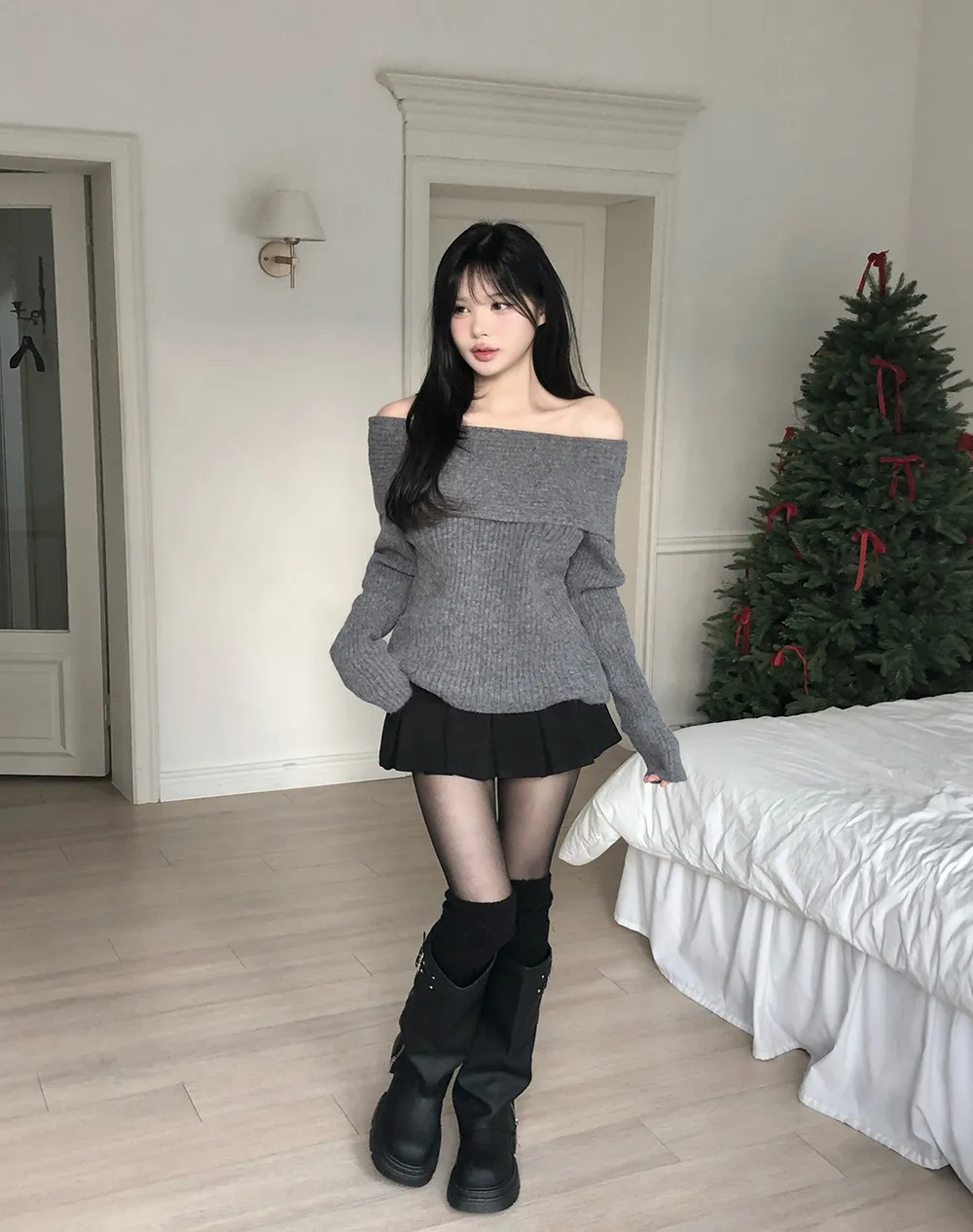 着用 : グレー / FREE,アイボリー / FREE