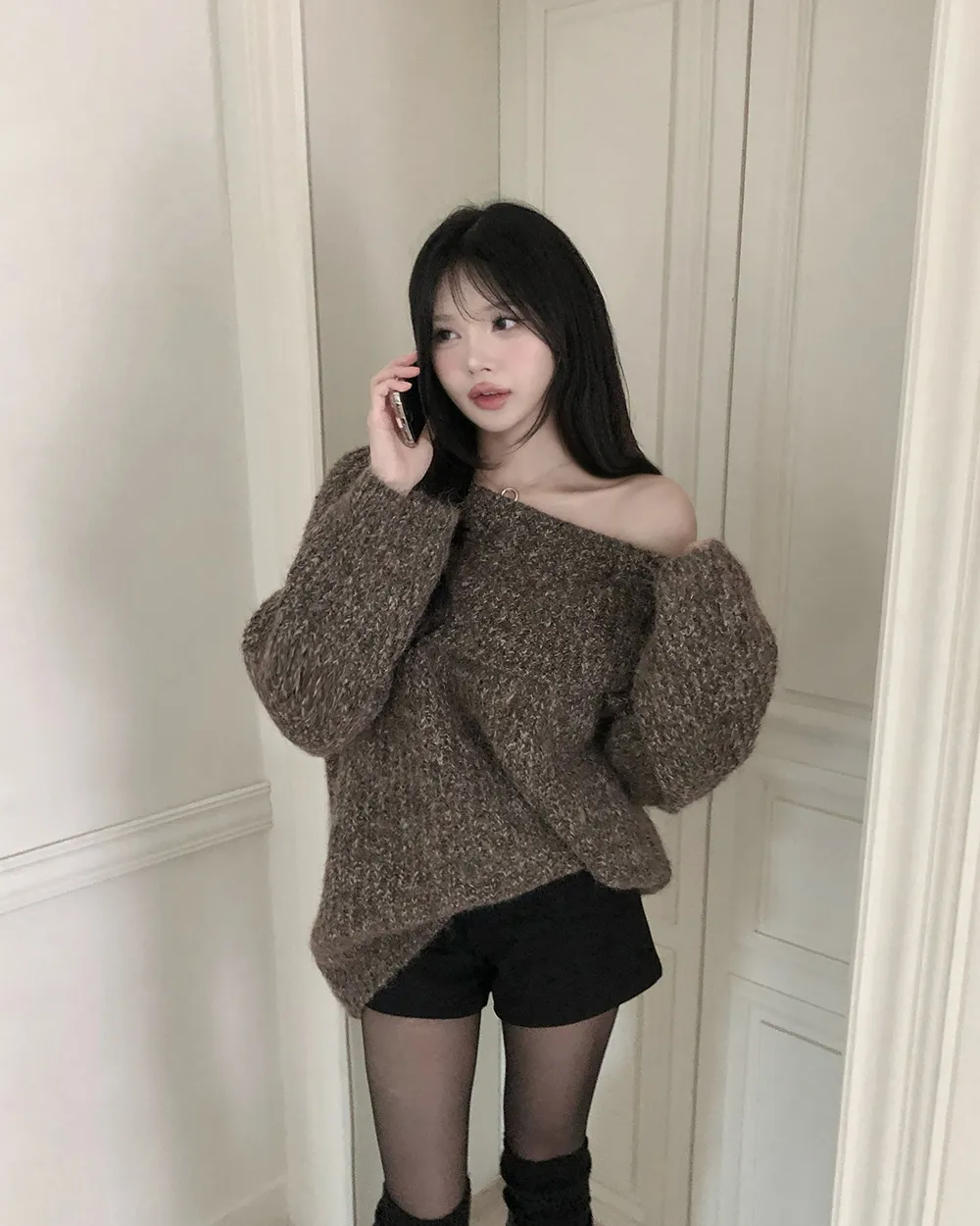 着用 : アイボリー / FREE,ブラウン / FREE