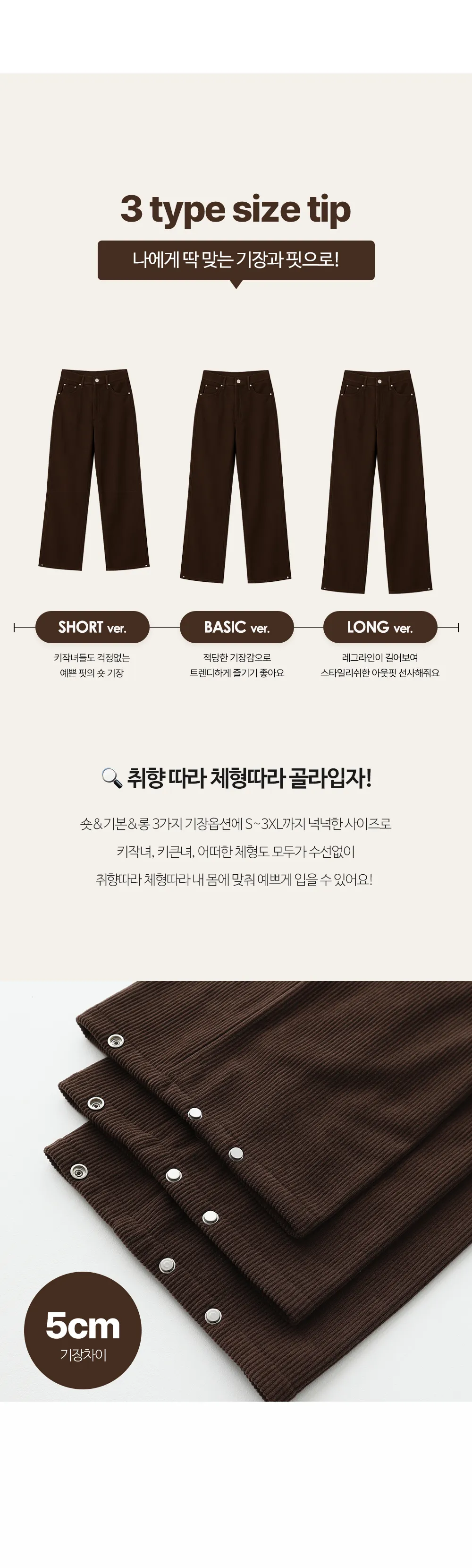 | 3XL | 82 (周囲) | 120 (周囲) | 68 (周囲) | 74 (周囲) | 36 | 101(ショート)/106(基本)/111(ロング) |