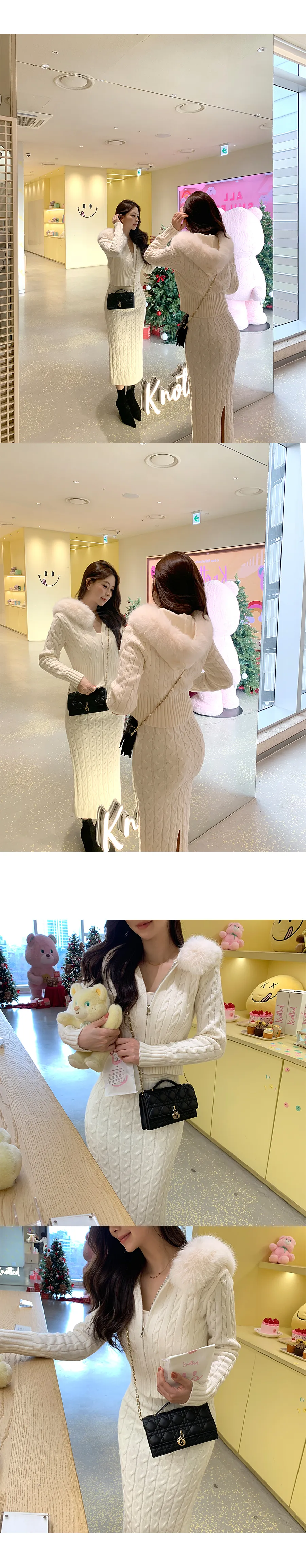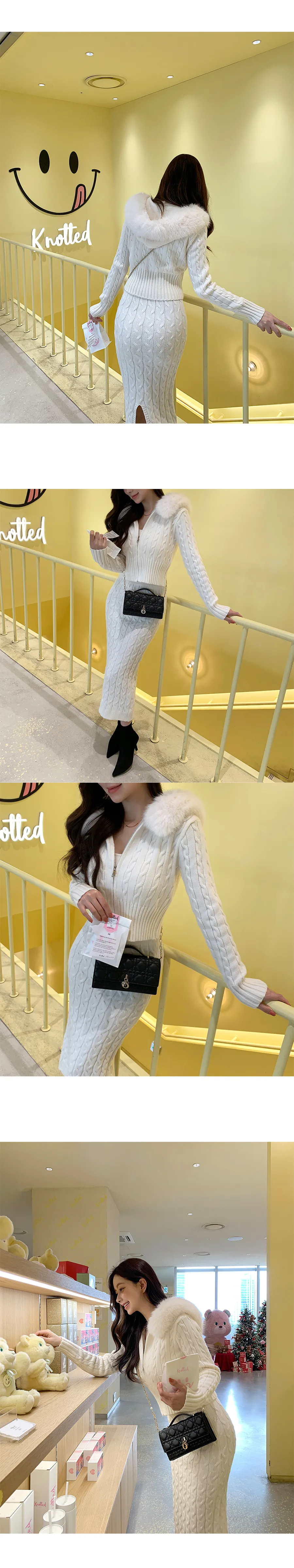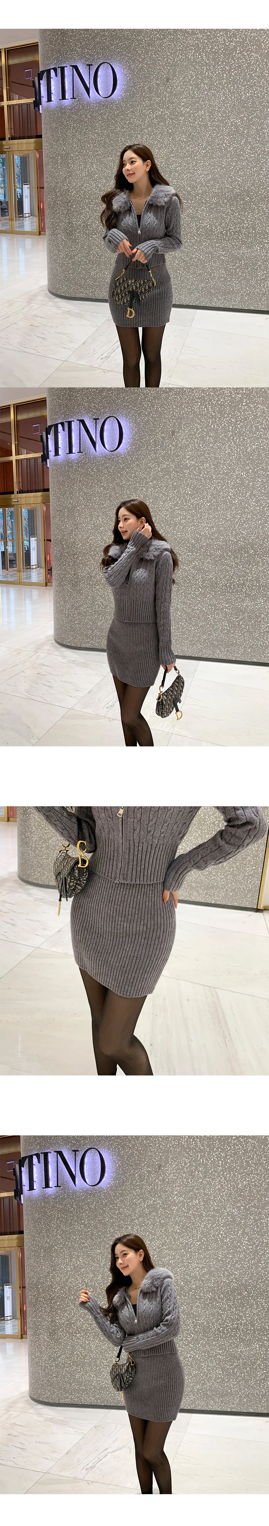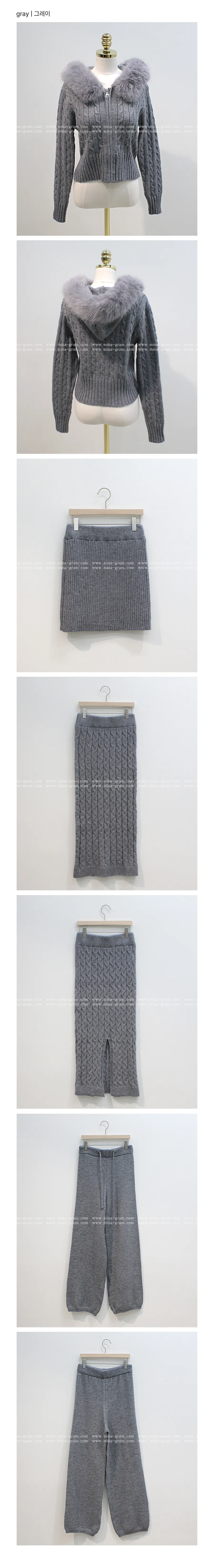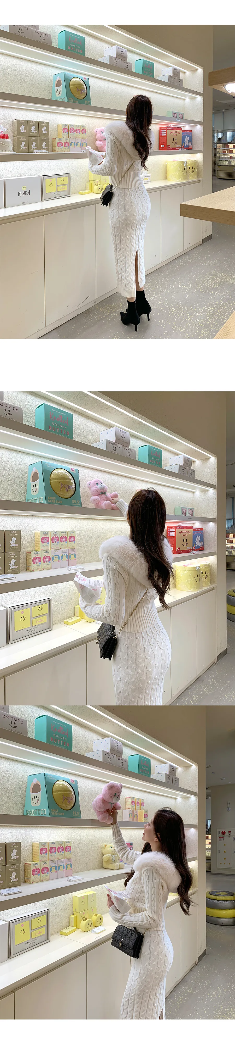 コットンニットカラーボタン長袖ハーフボタンスリーブワンポケットウエストゴムスリットラインHライン(ロング丈)ドローストリングストライプスカートショールシャツ3 SET