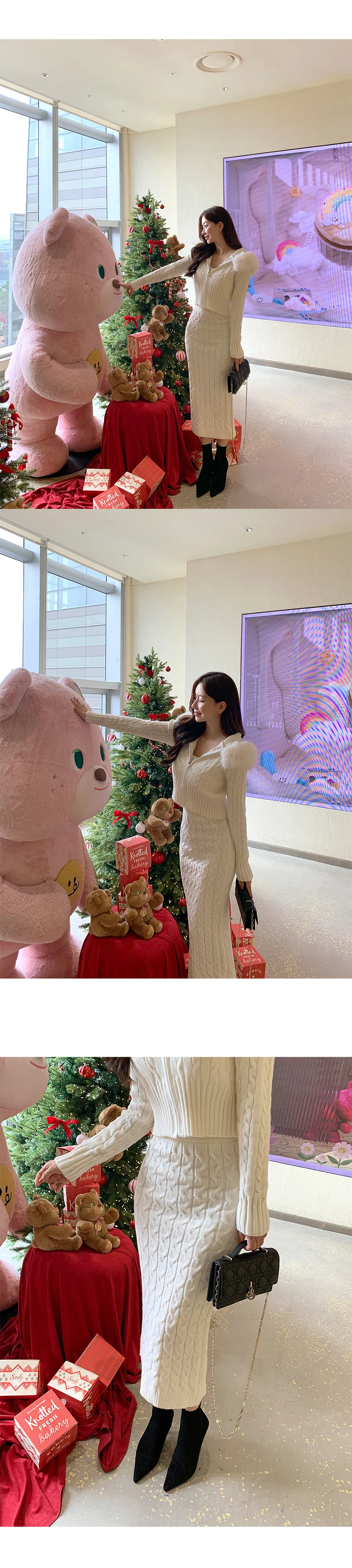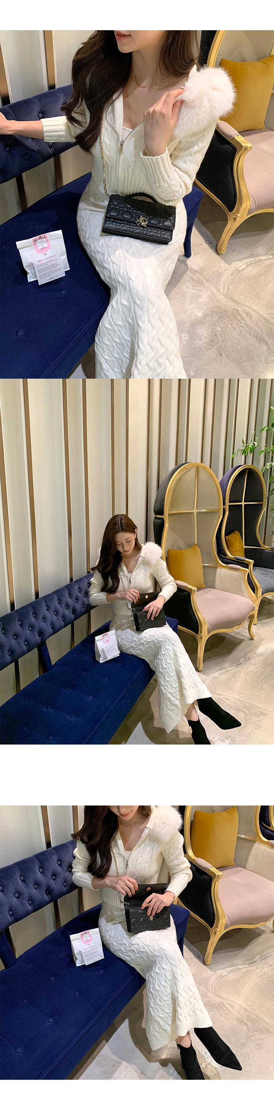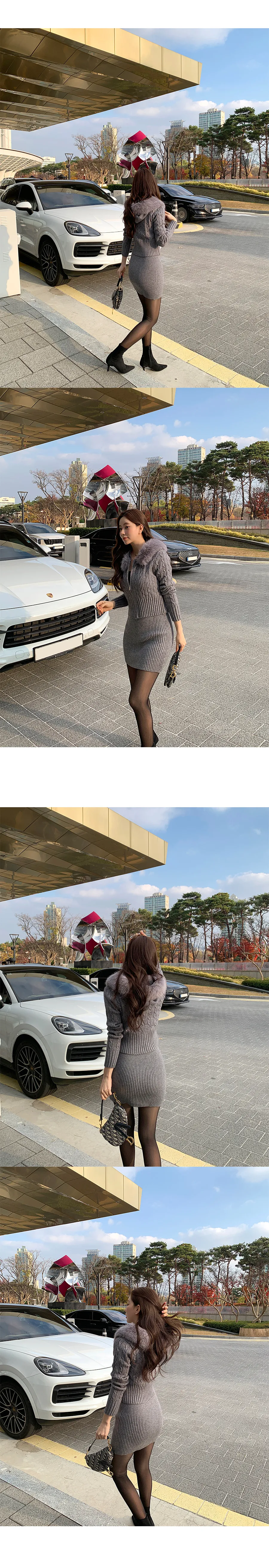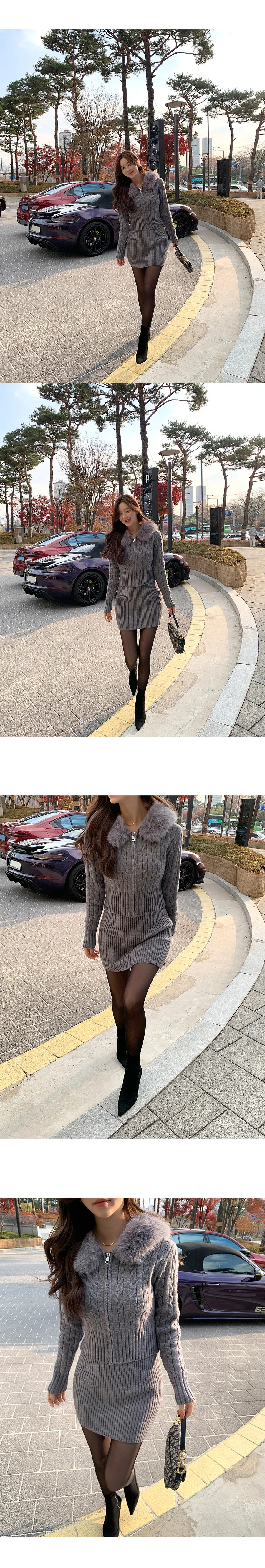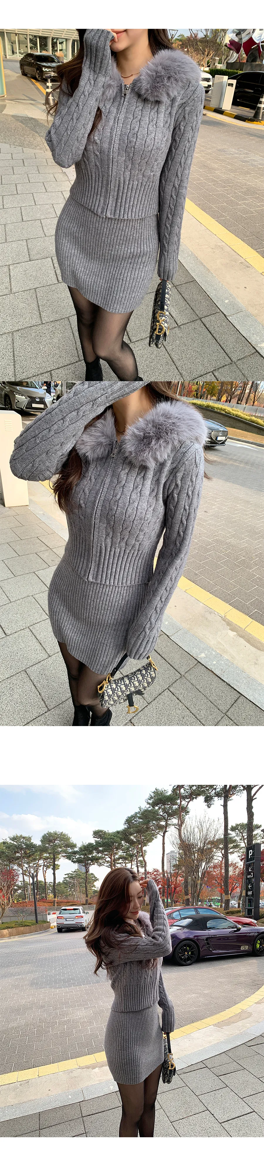 コットンニットカラーボタン長袖ハーフボタンスリーブワンポケットウエストゴムスリットラインHライン(ロング丈)ドローストリングストライプスカートショールシャツ3 SET
