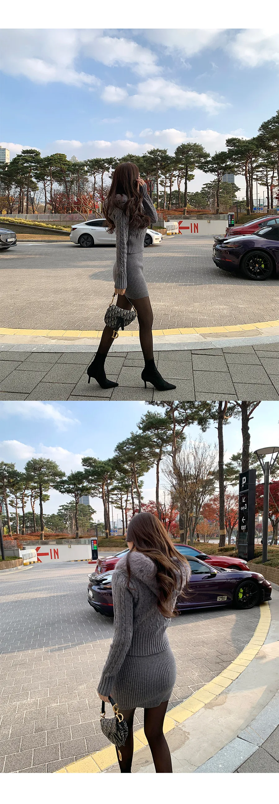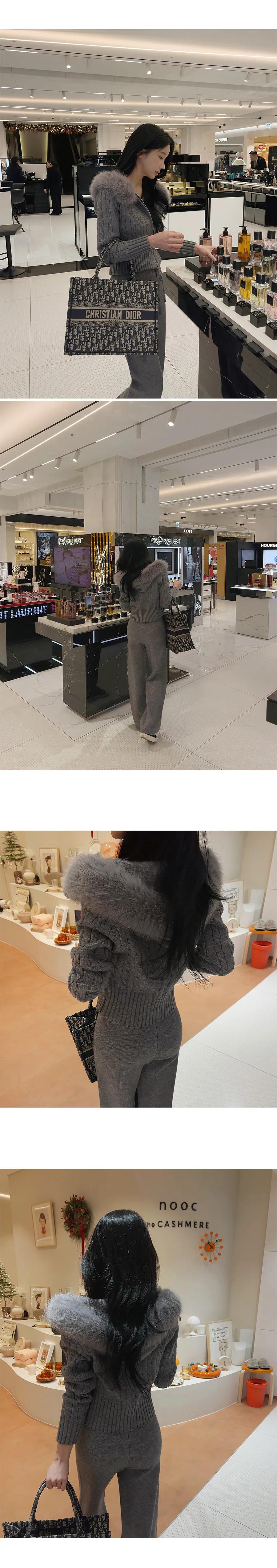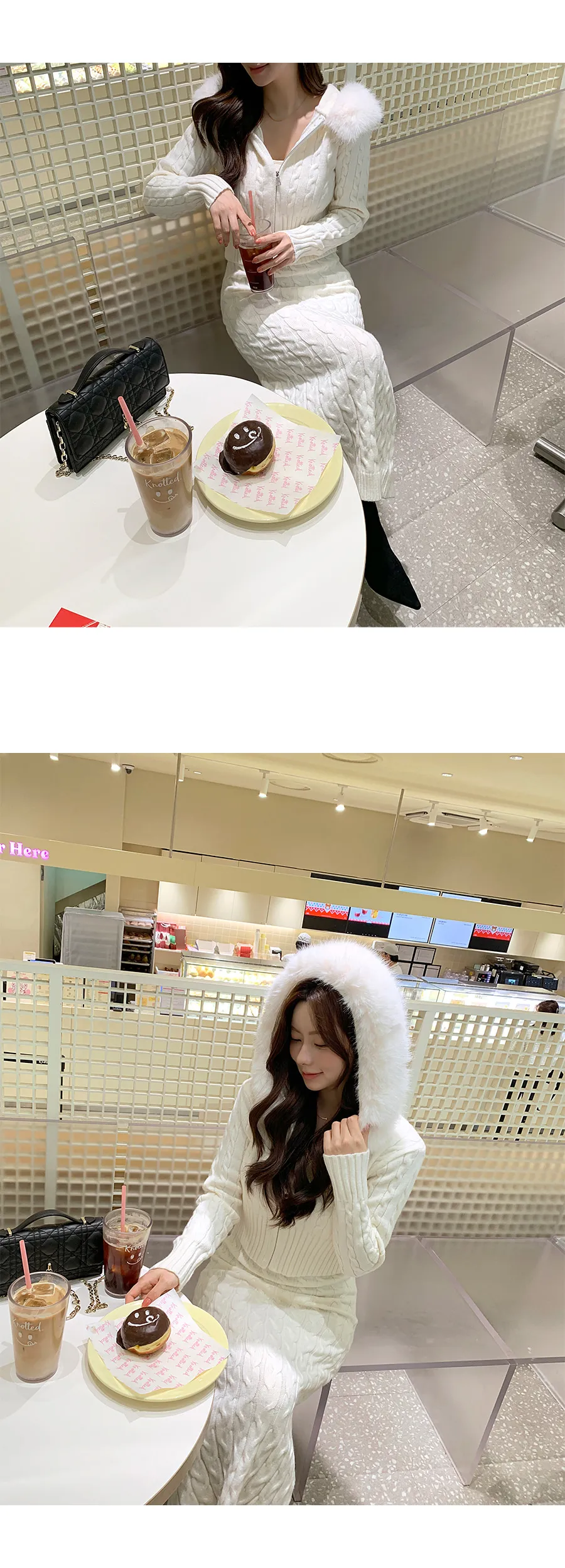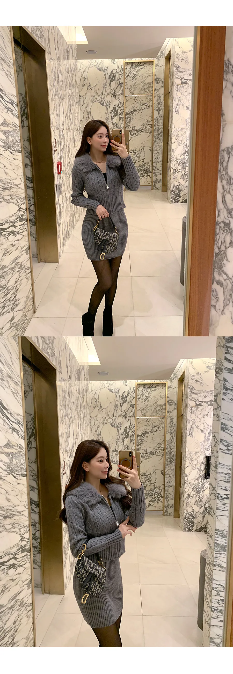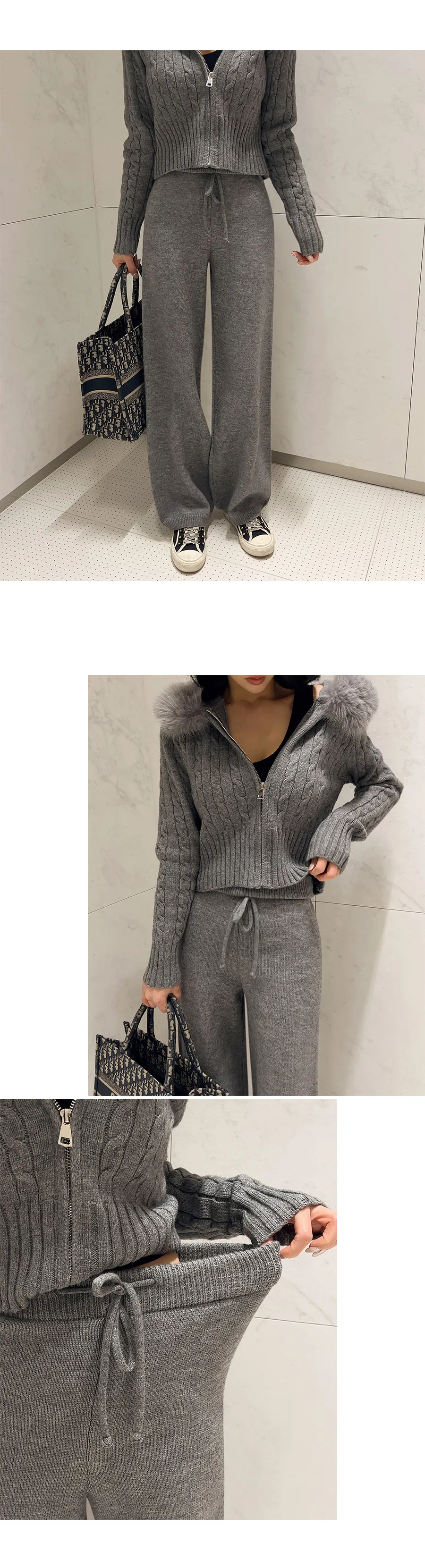 コットンニットカラーボタン長袖ハーフボタンスリーブワンポケットウエストゴムスリットラインHライン(ロング丈)ドローストリングストライプスカートショールシャツ3 SET