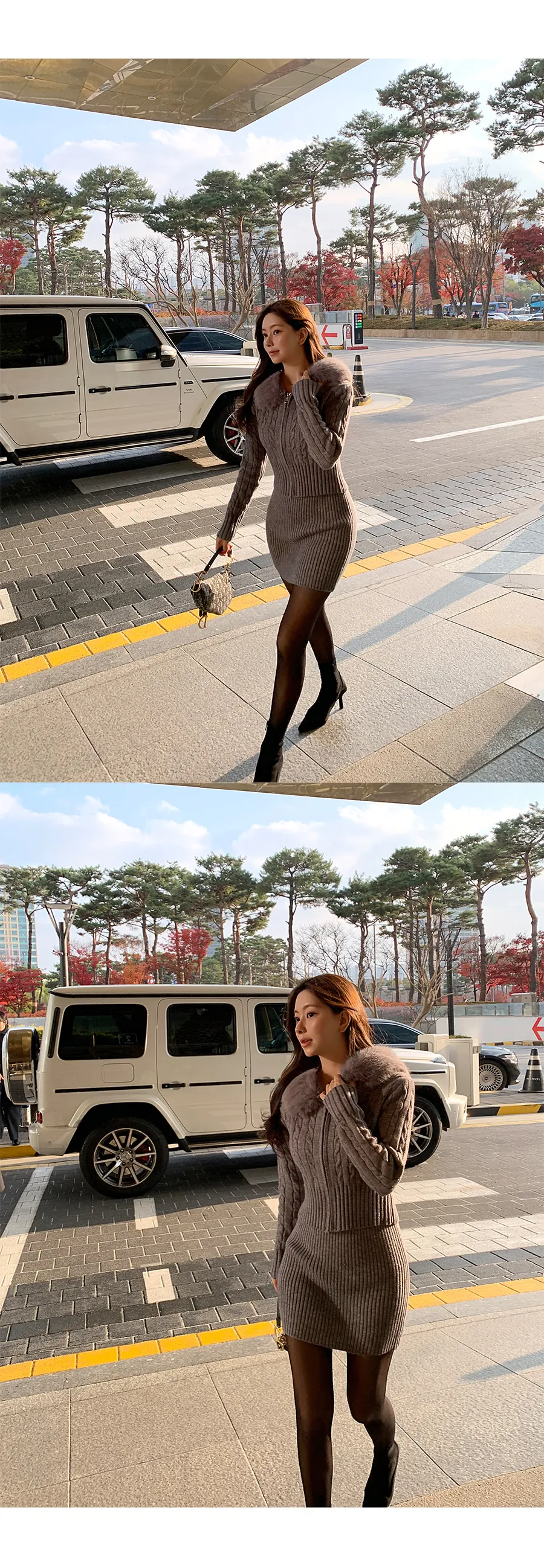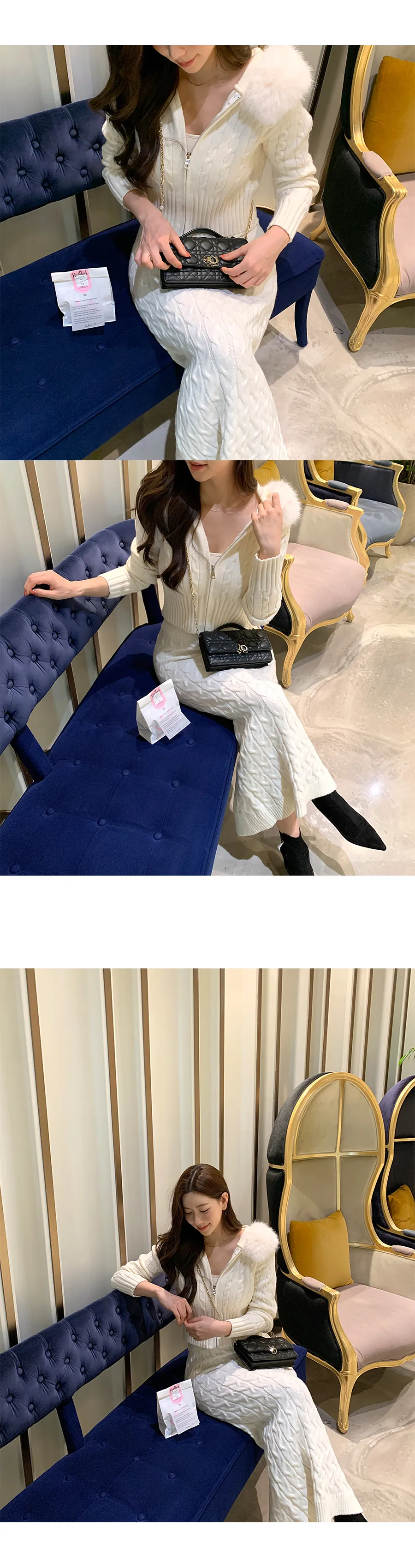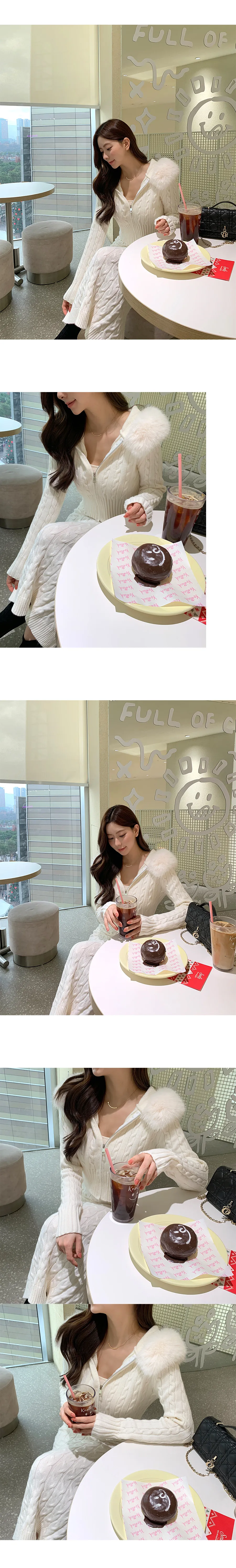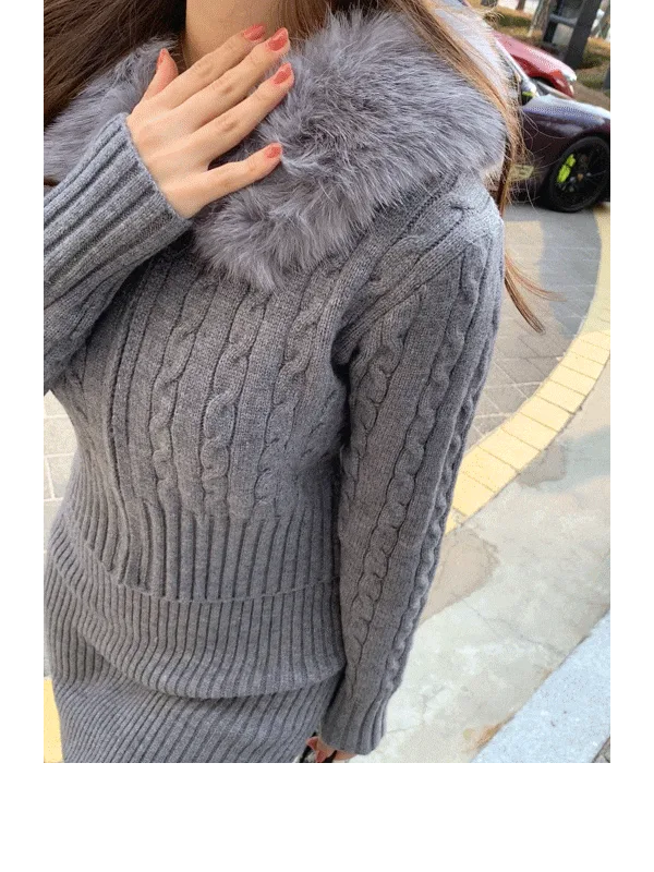 ツイードラウンドネックプリーツハイウエスト肩パッドクロップド長袖ミディツーポケットAラインホックヒドゥンジッパー配色ツーピース(トップス、ボトムス)スカートジャケット