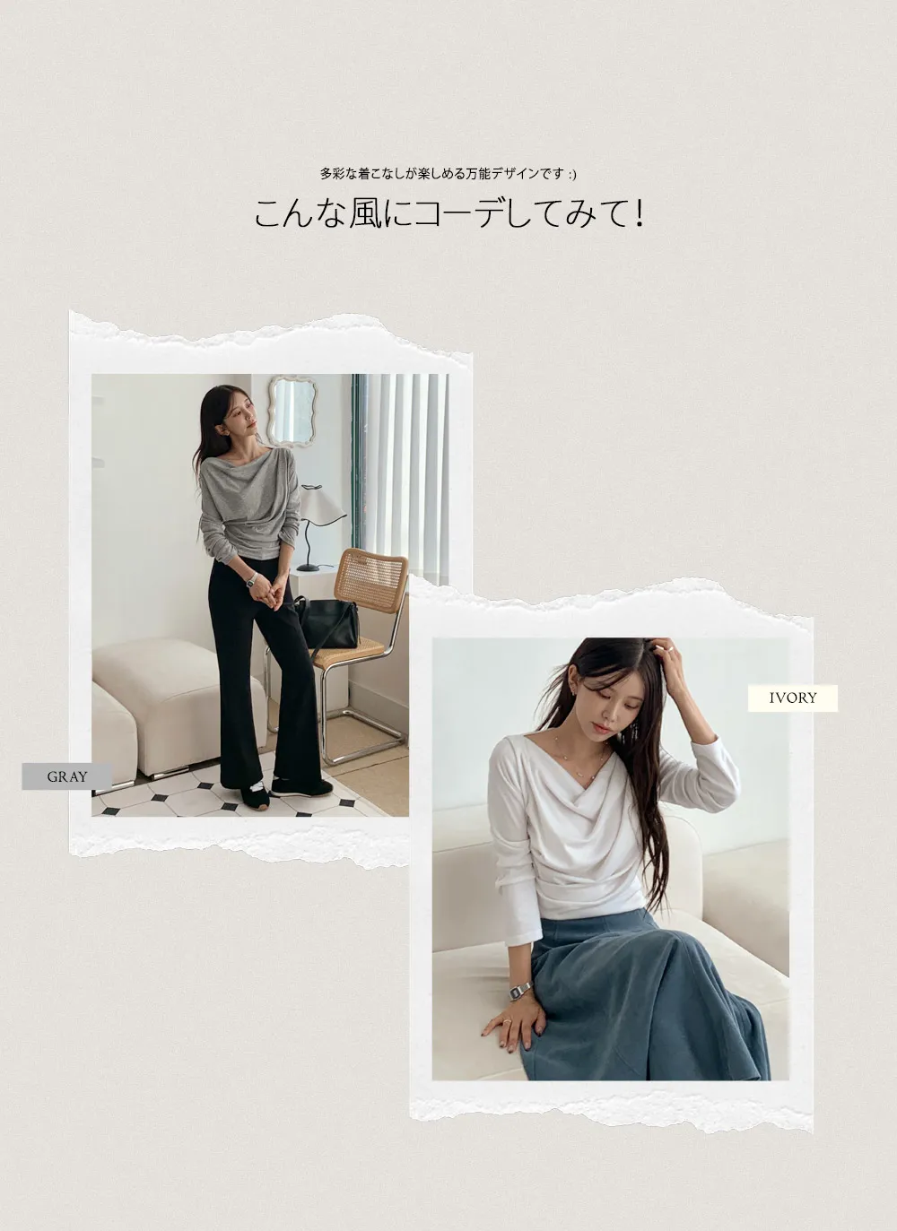 着用 : アイボリー / FREE,グレー / FREE
