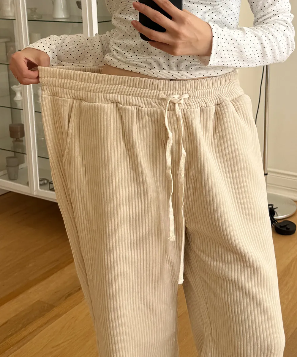 | Size | ウエスト | ヒップ | 裾幅 | わたり | 股上 | 着丈 |