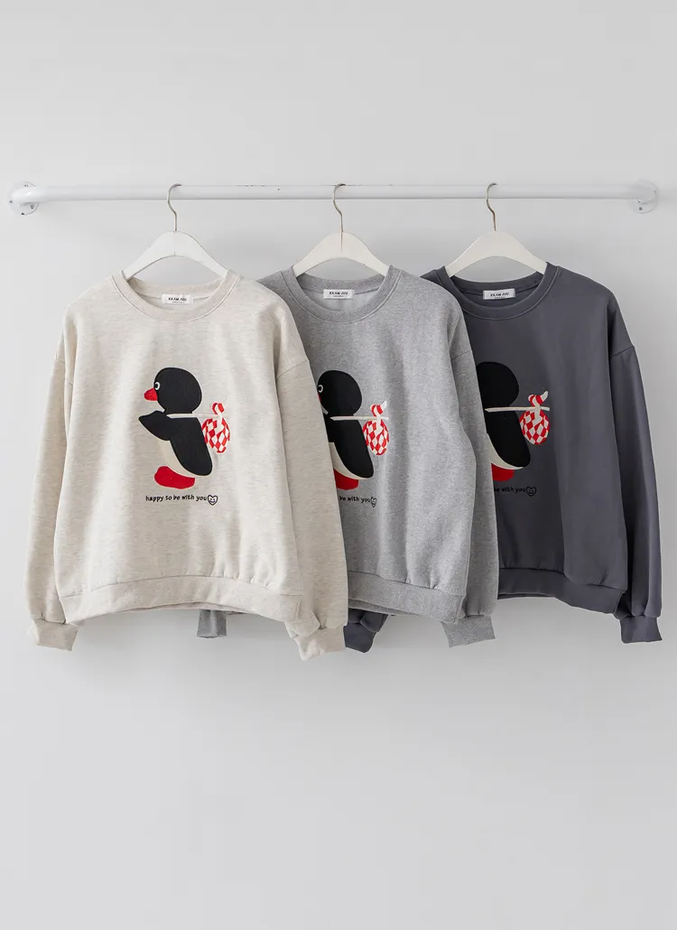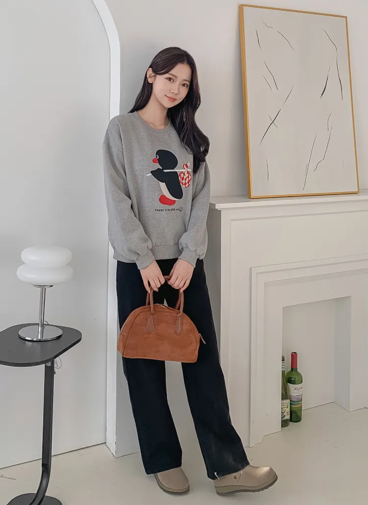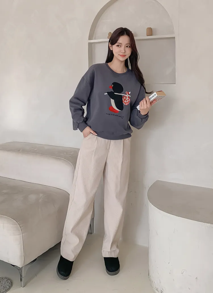 裏起毛ラウンドネック長袖ルーズプリントスウェット