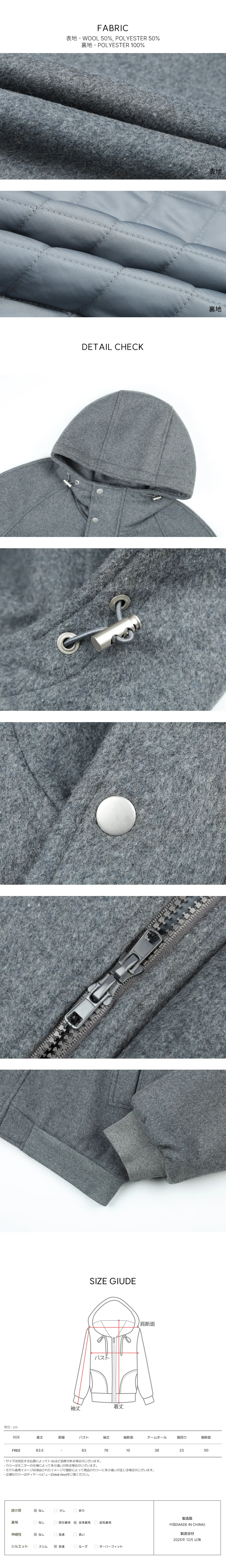 | FREE | 63 | 76(肩幅含む) | 63.5 | 10 | 38 | 50 |