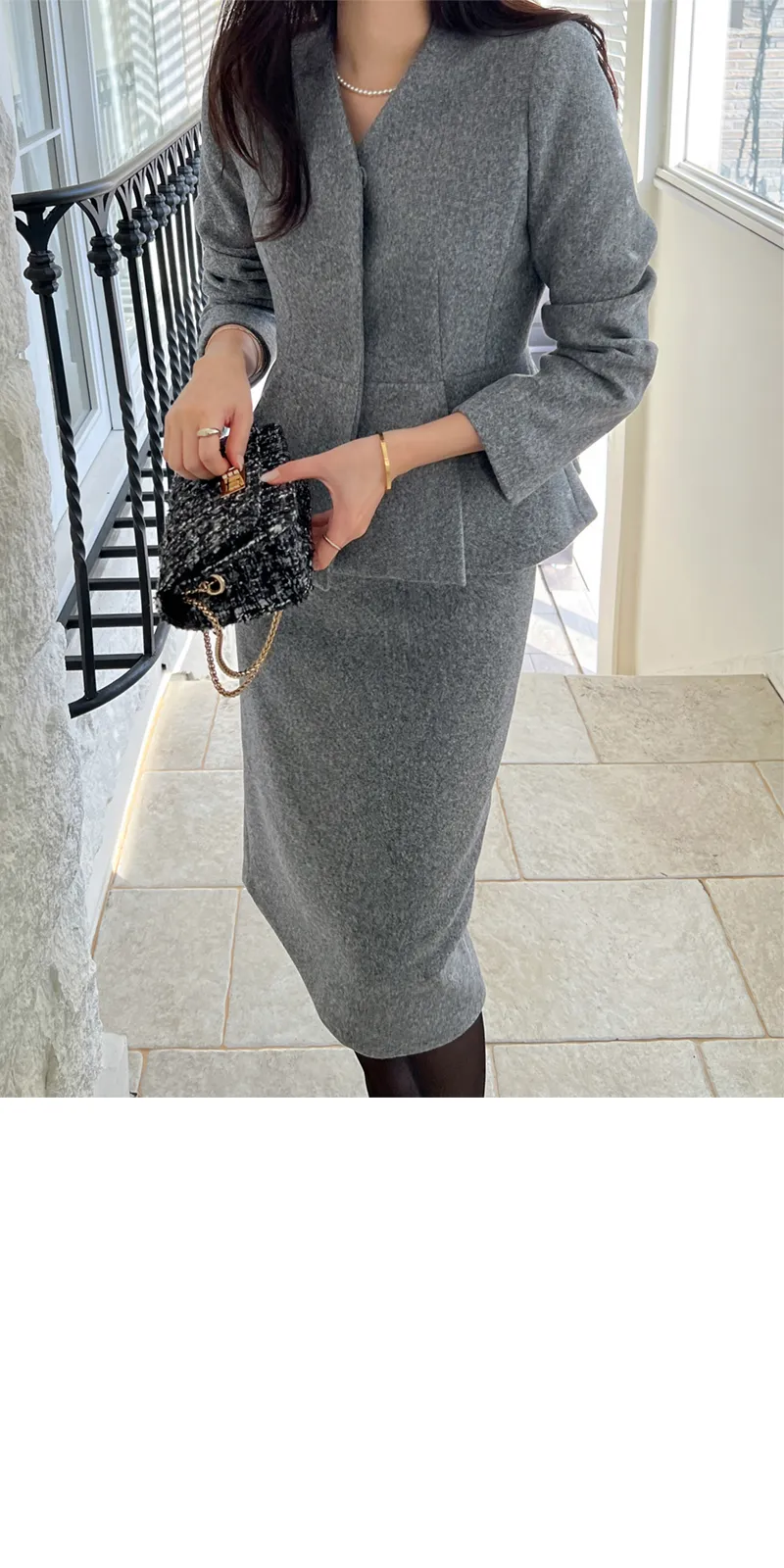 着用 : グレー / 세트S(모델착용)