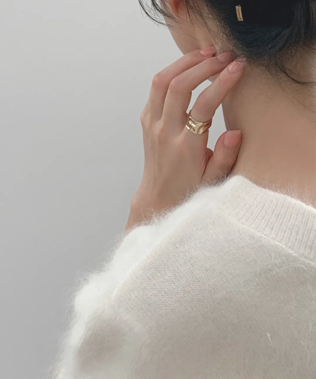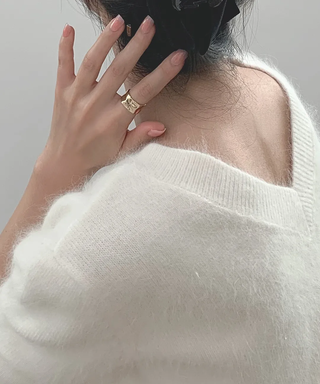 リブ長袖スリムオフショルダーニット