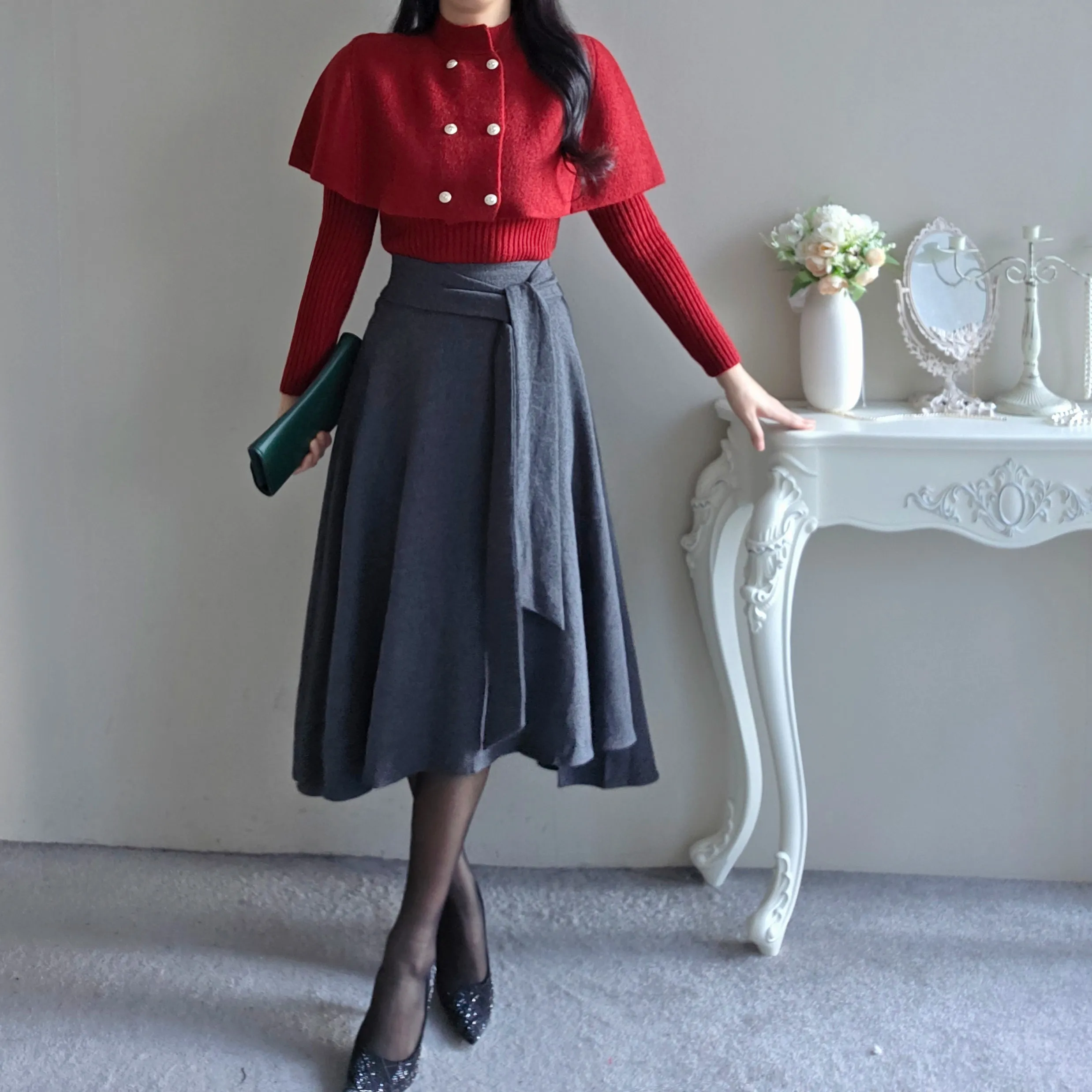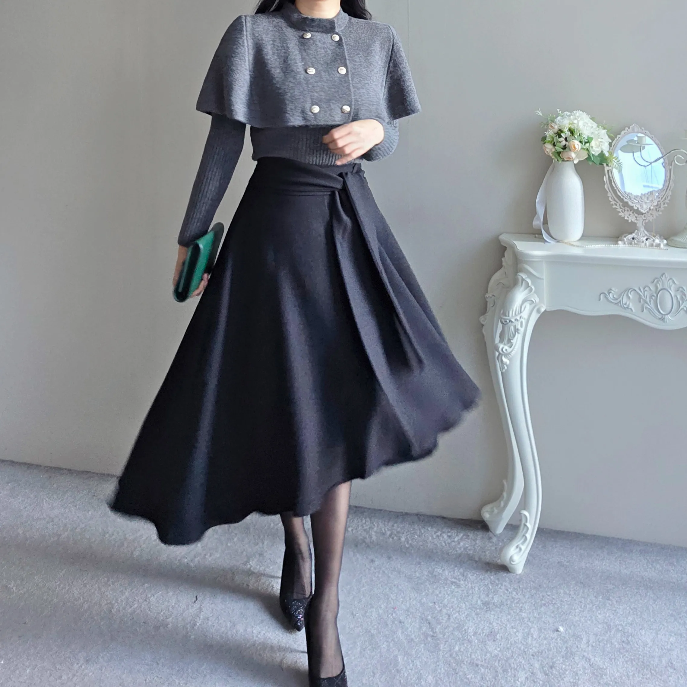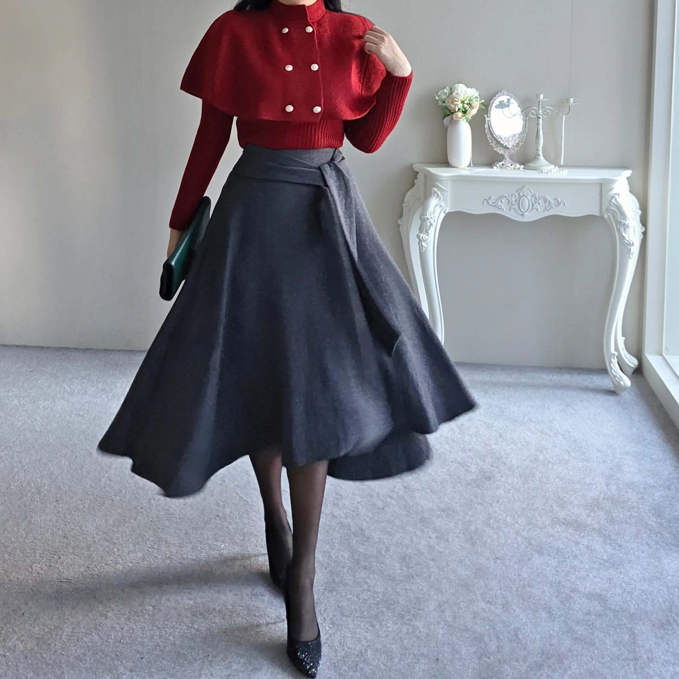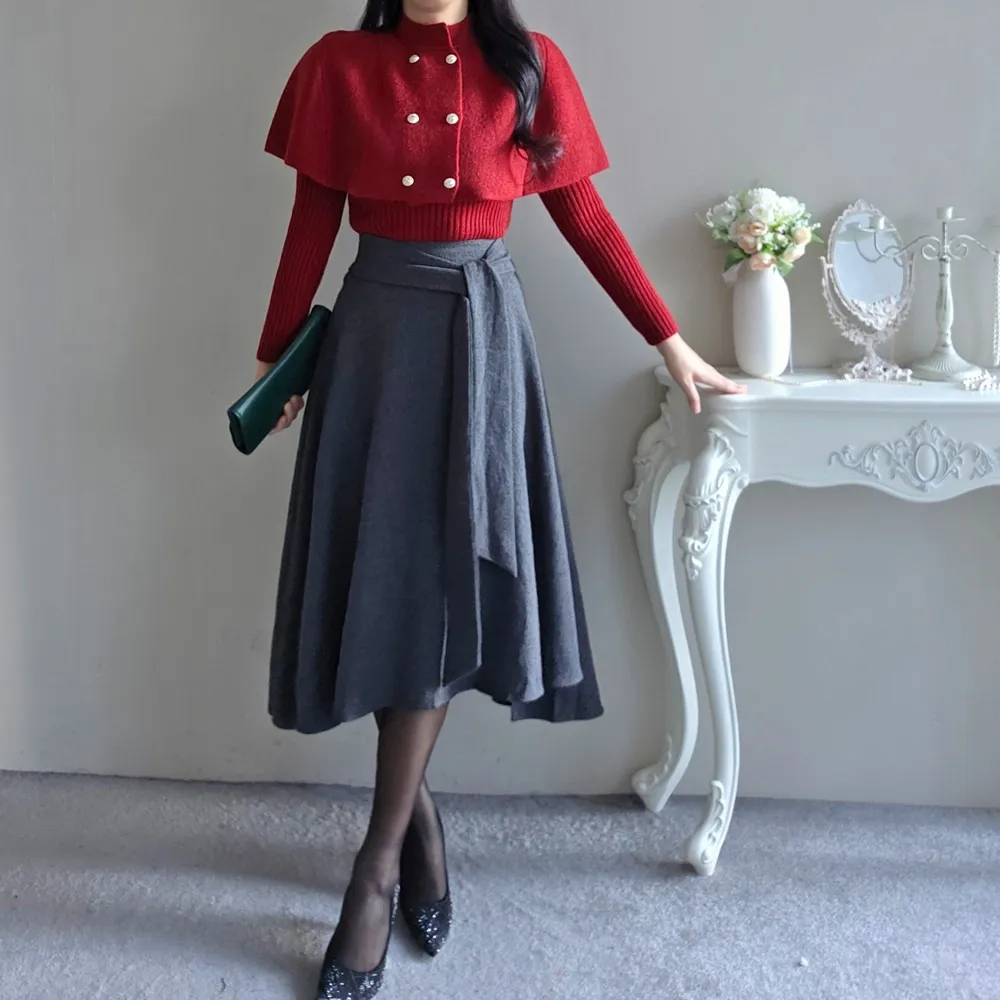 ウール混ハイウエストミニスカート