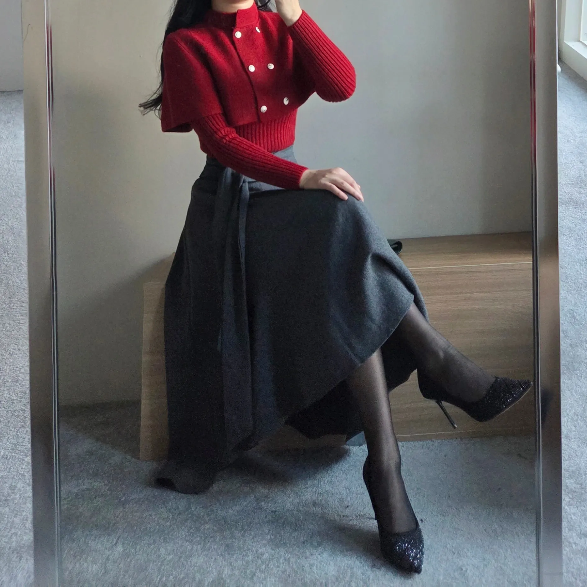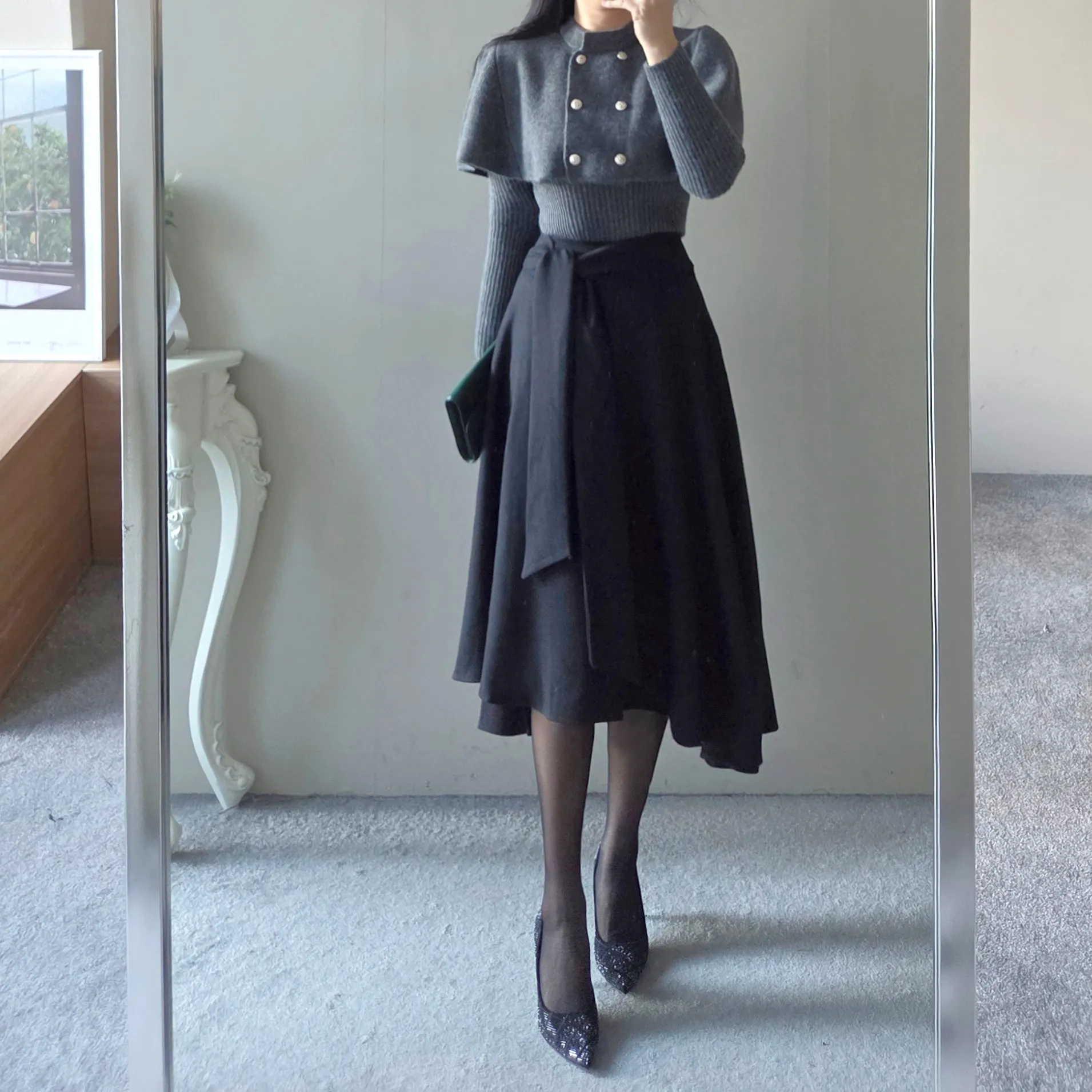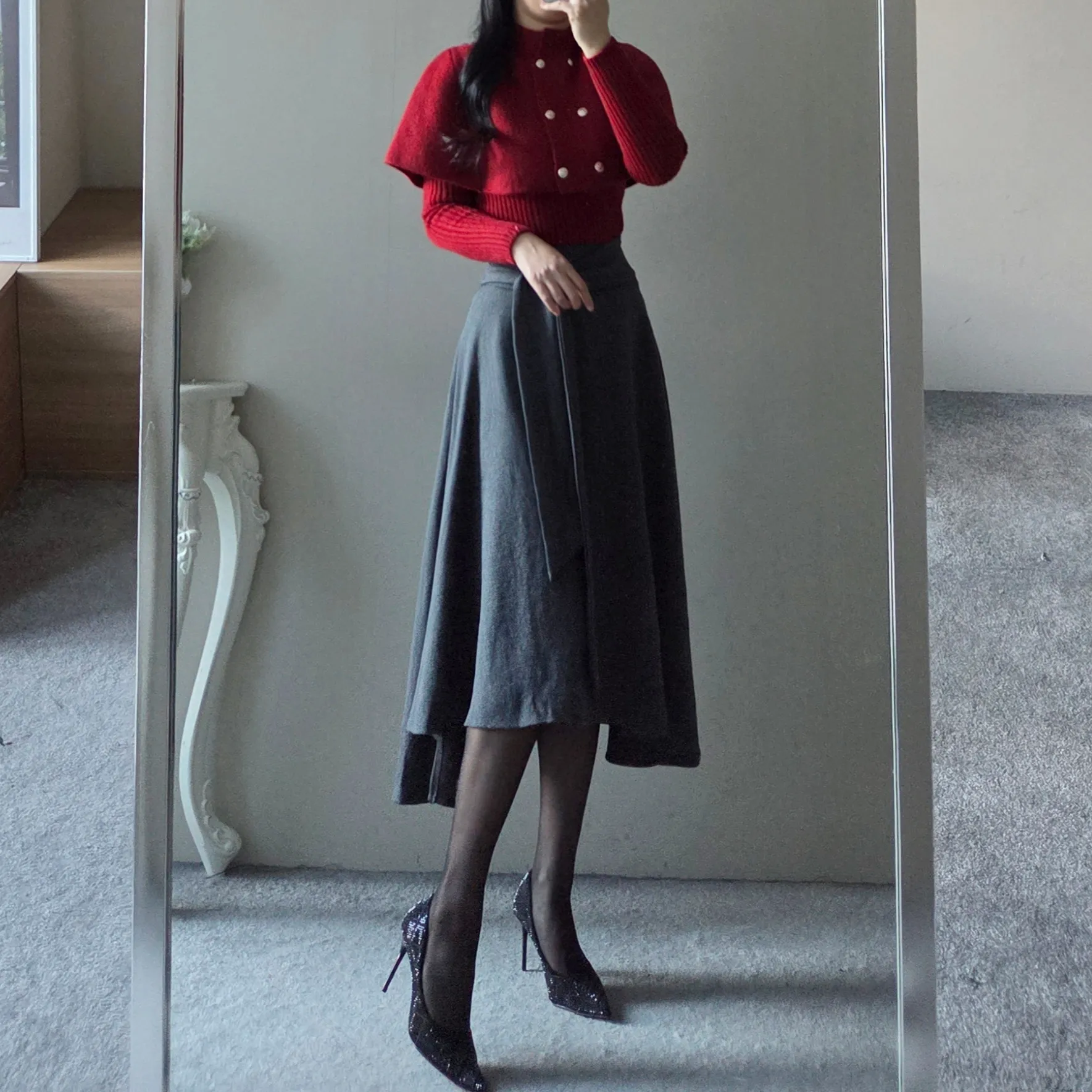ウール混ハイウエストミニスカート