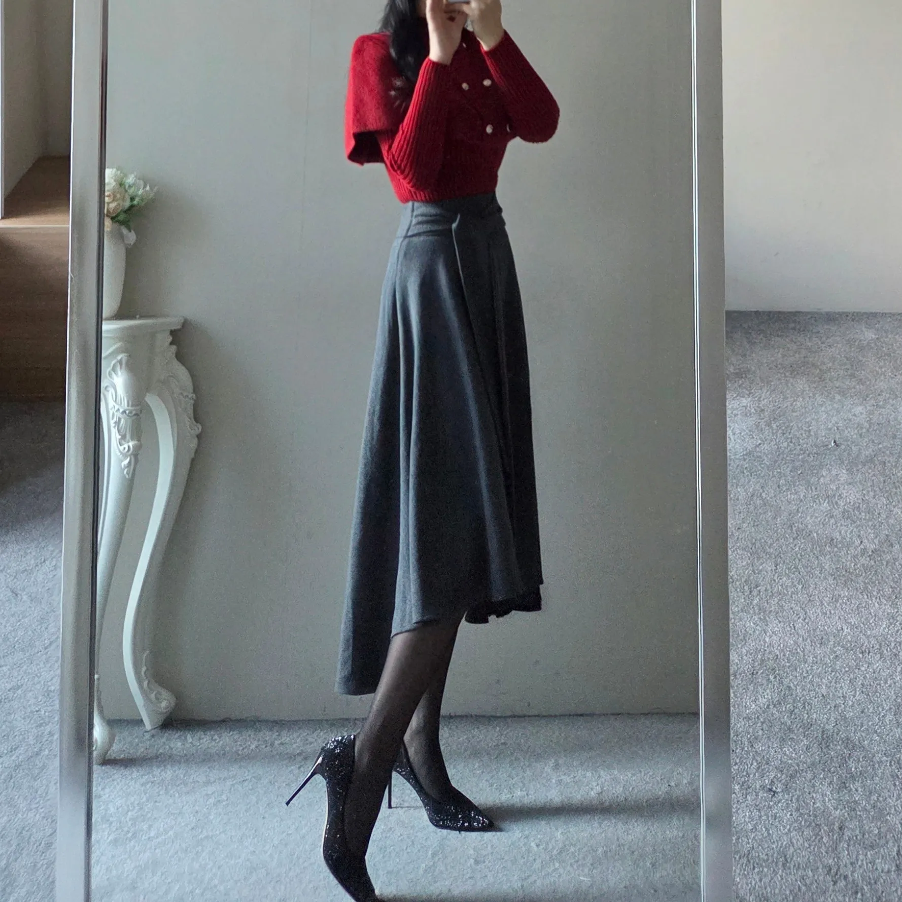 起毛ハイウエストロングフレアスカート