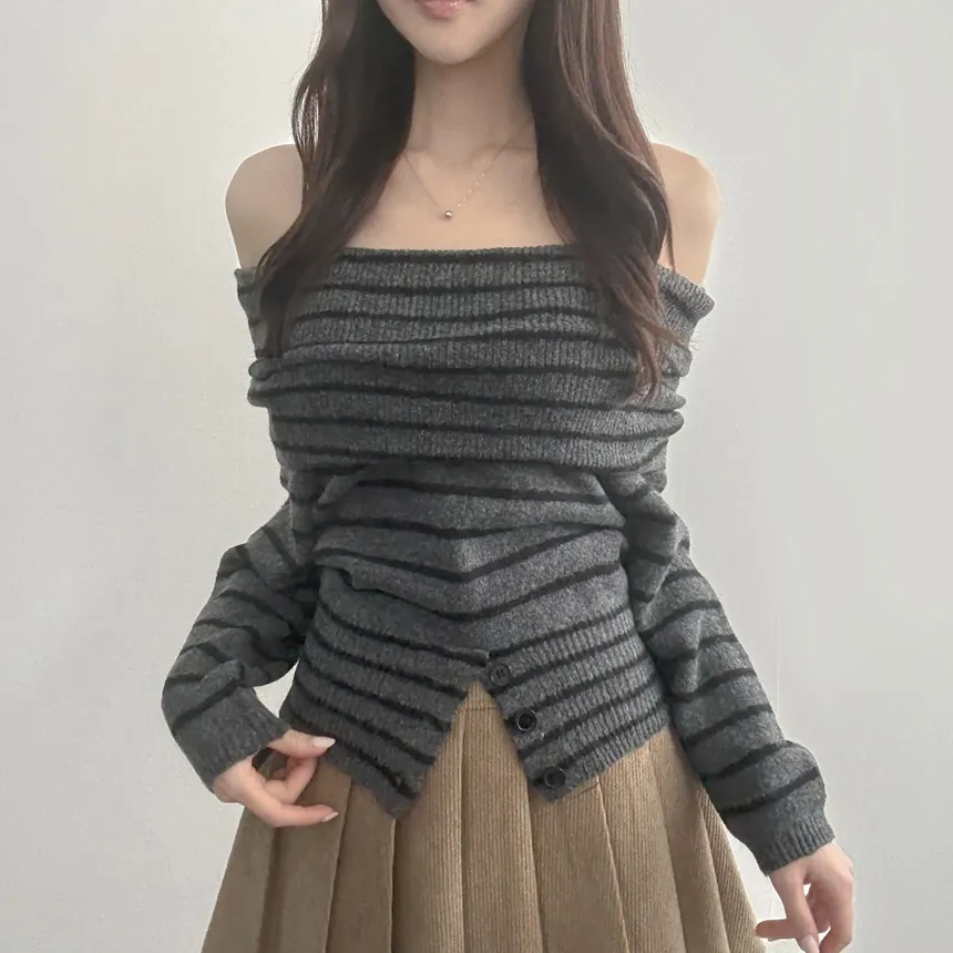 着用 : クリーム / FREE,ディープグレー / FREE,ボーダー / FREE,ブラック / FREE