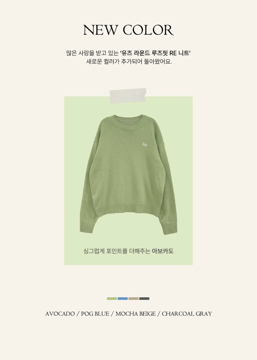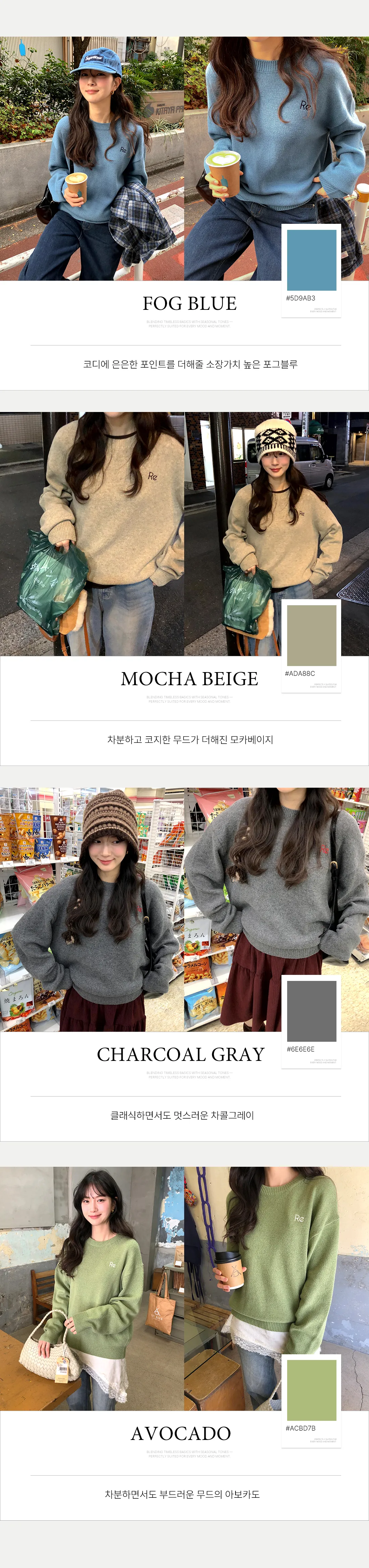 着用 : チャコールグレー / FREE,モカベージュ / FREE,フォグブルー / FREE,アボガド / FREE