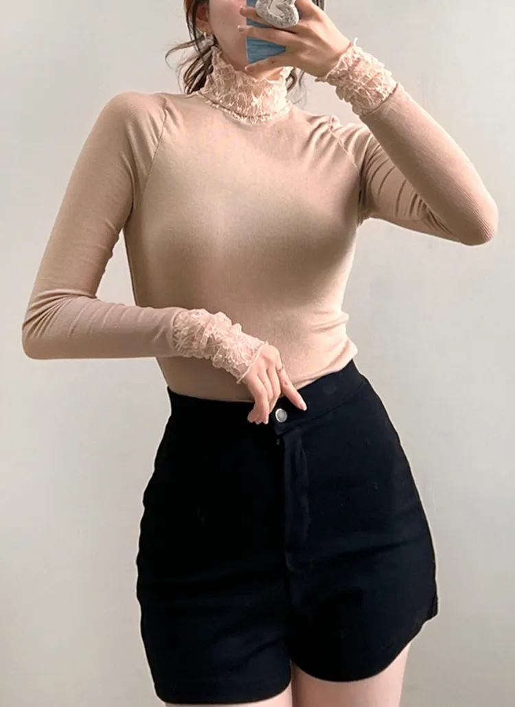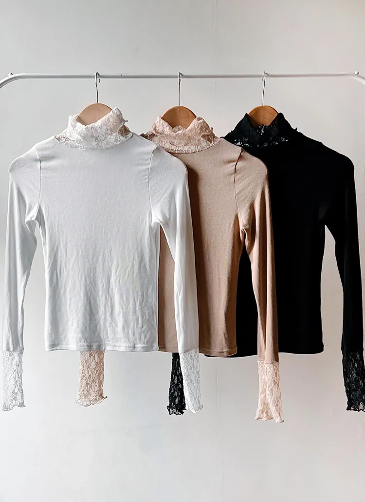 タートルネック長袖レースTシャツ・B1950408