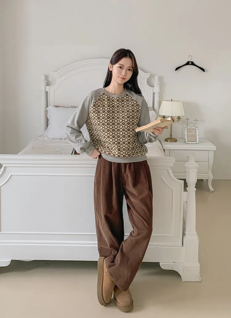 裏起毛ラウンドネック長袖ルーズプリントスウェット