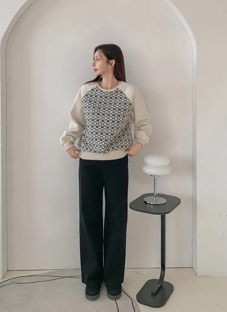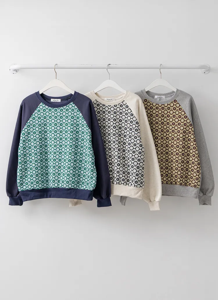 裏起毛ラウンドネック花柄カラースウェット・B1950417