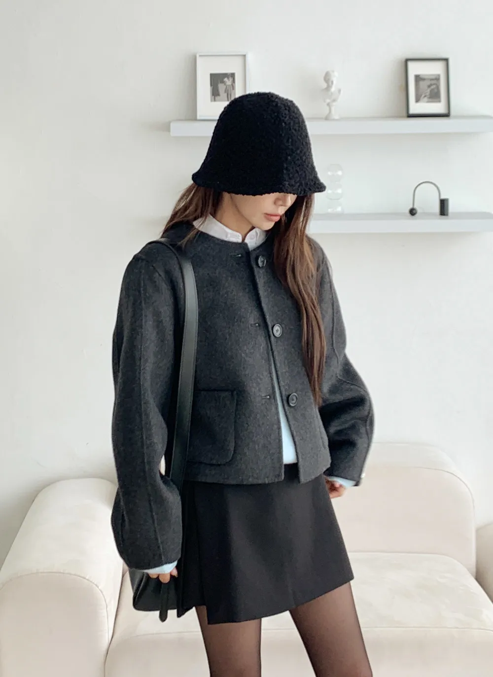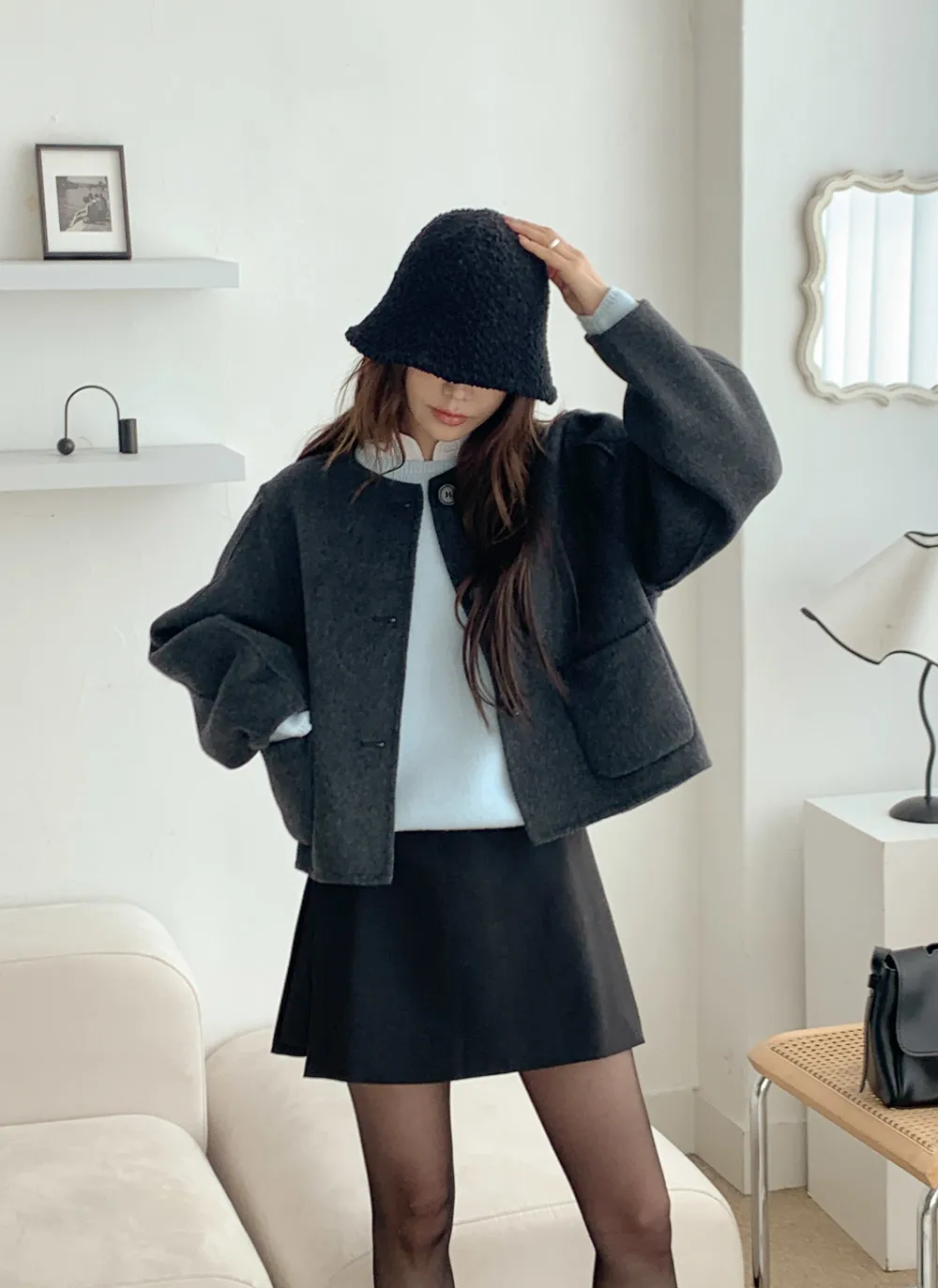 ウールラウンドネックバルーンショートジャケット