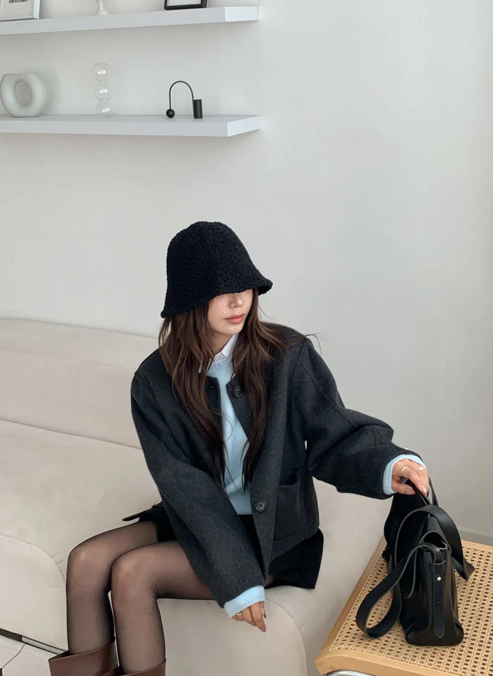 ウール混ソフトバケットハット
