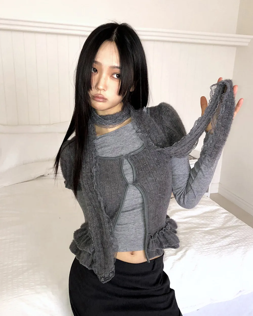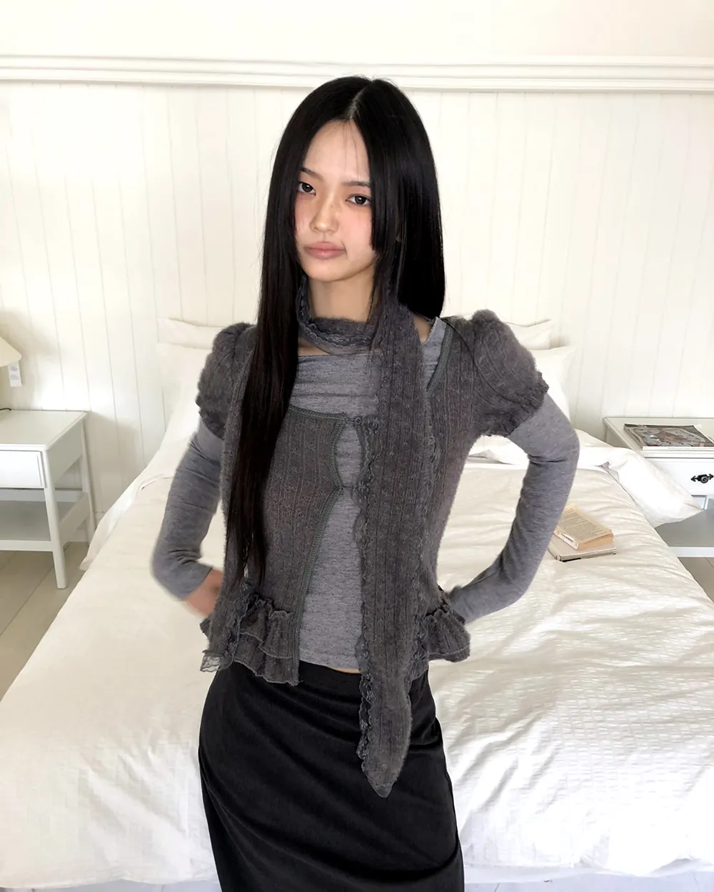 着用 : アイボリー / FREE,グレー / FREE