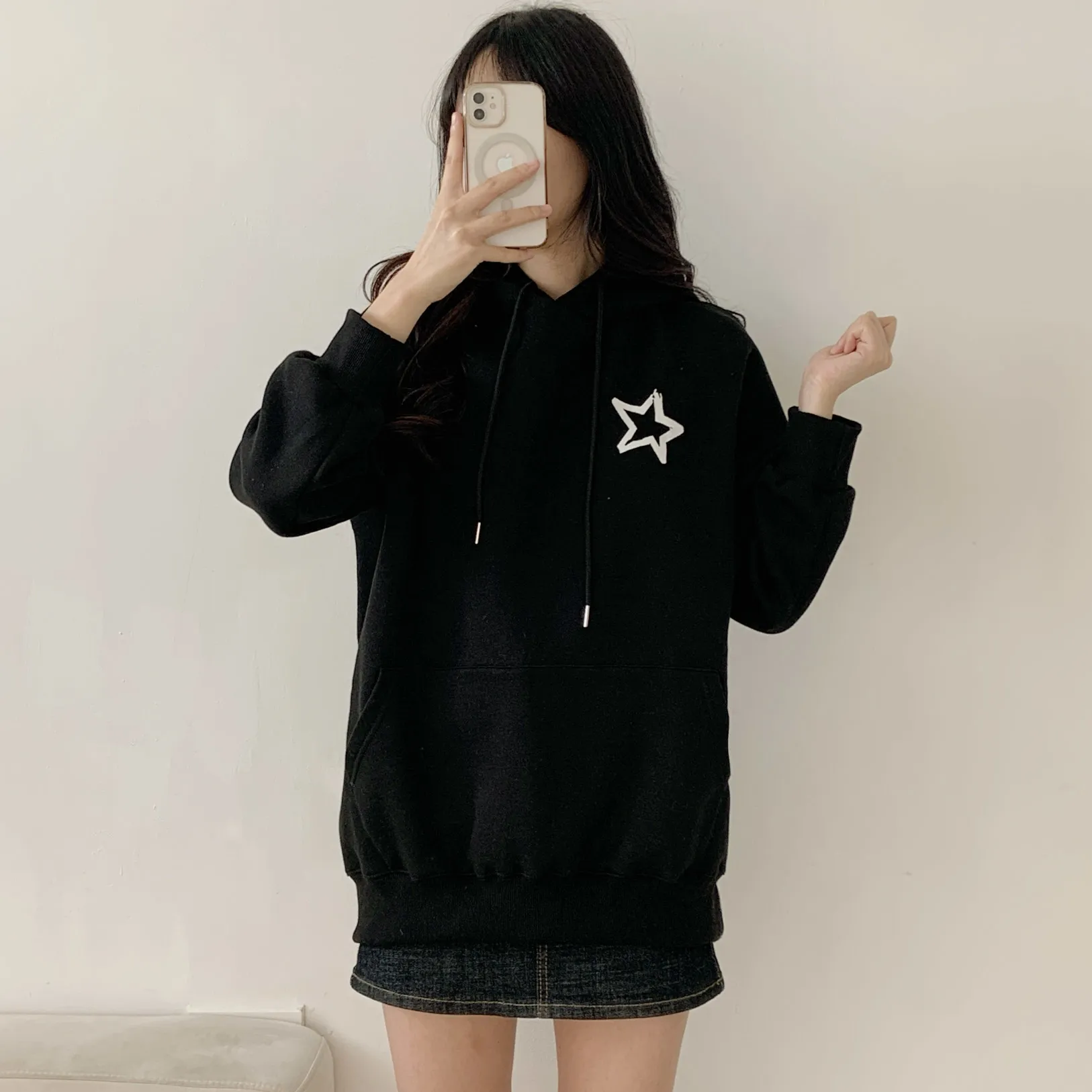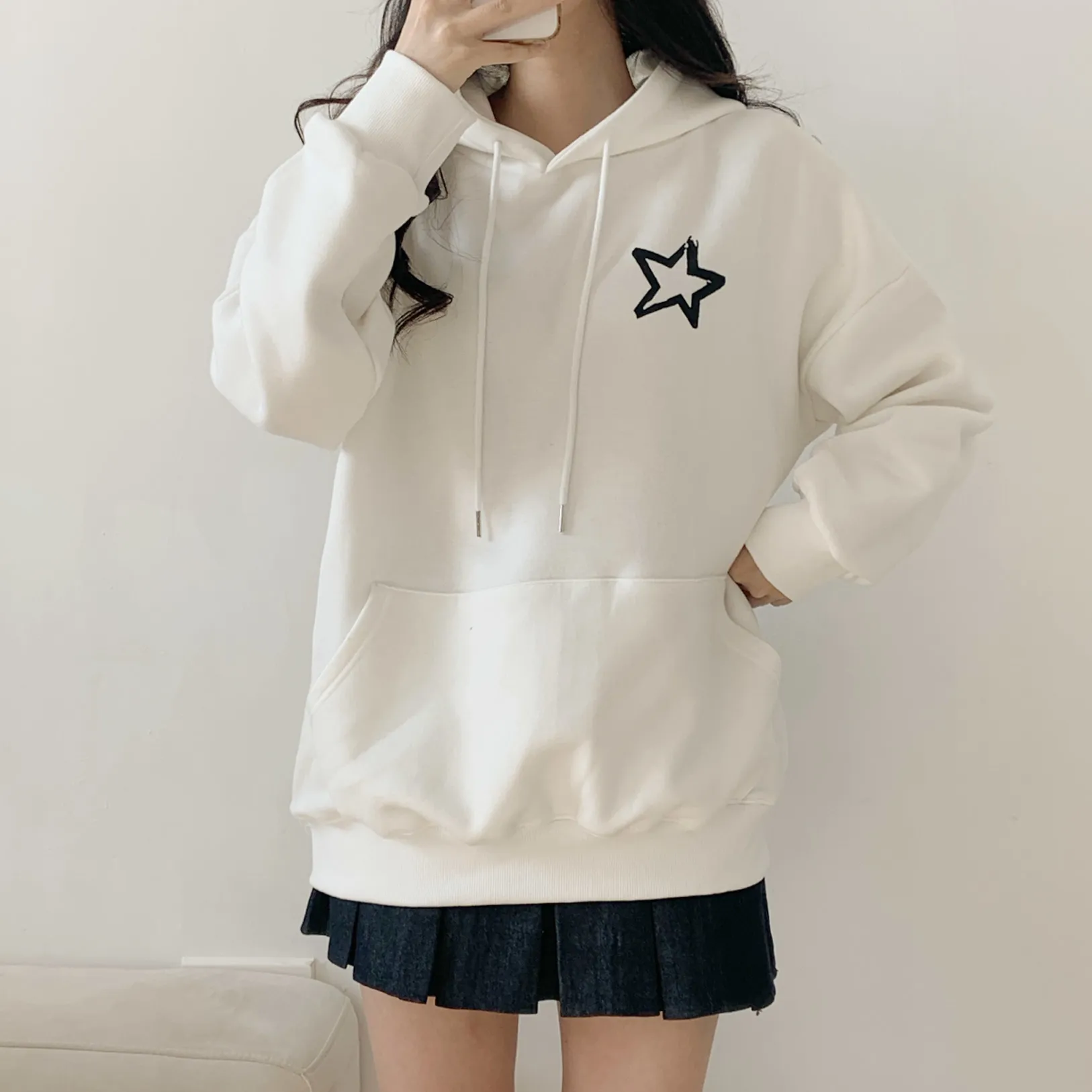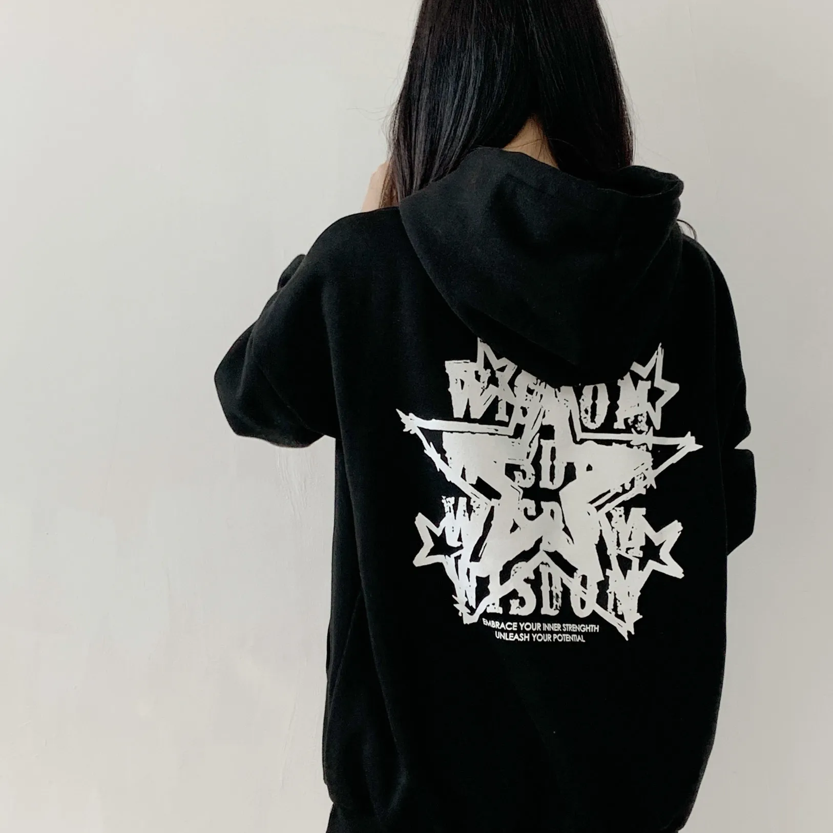 裏起毛フードオーバーサイズルーズ長袖星柄両面プリントパーカー・B1950679