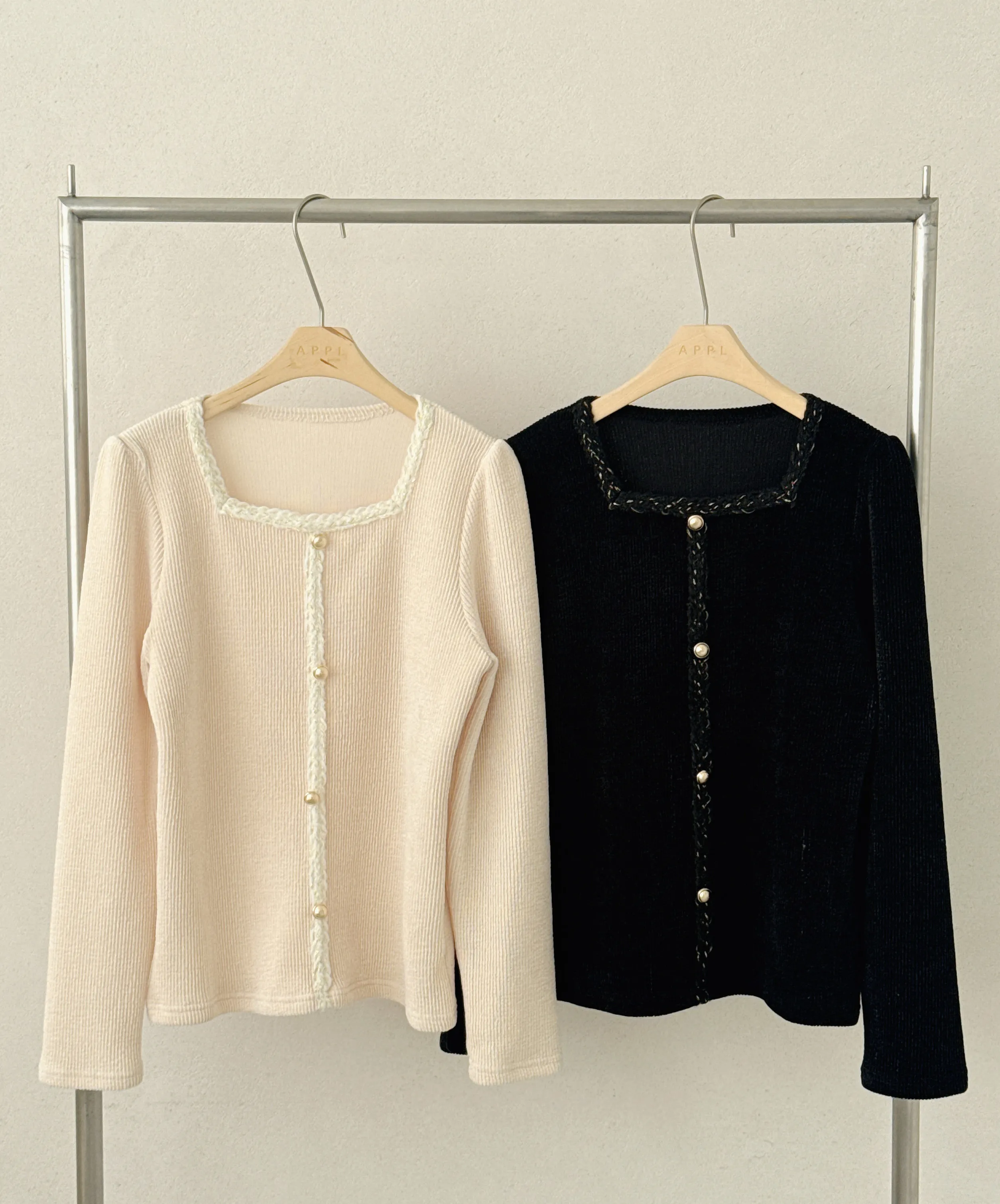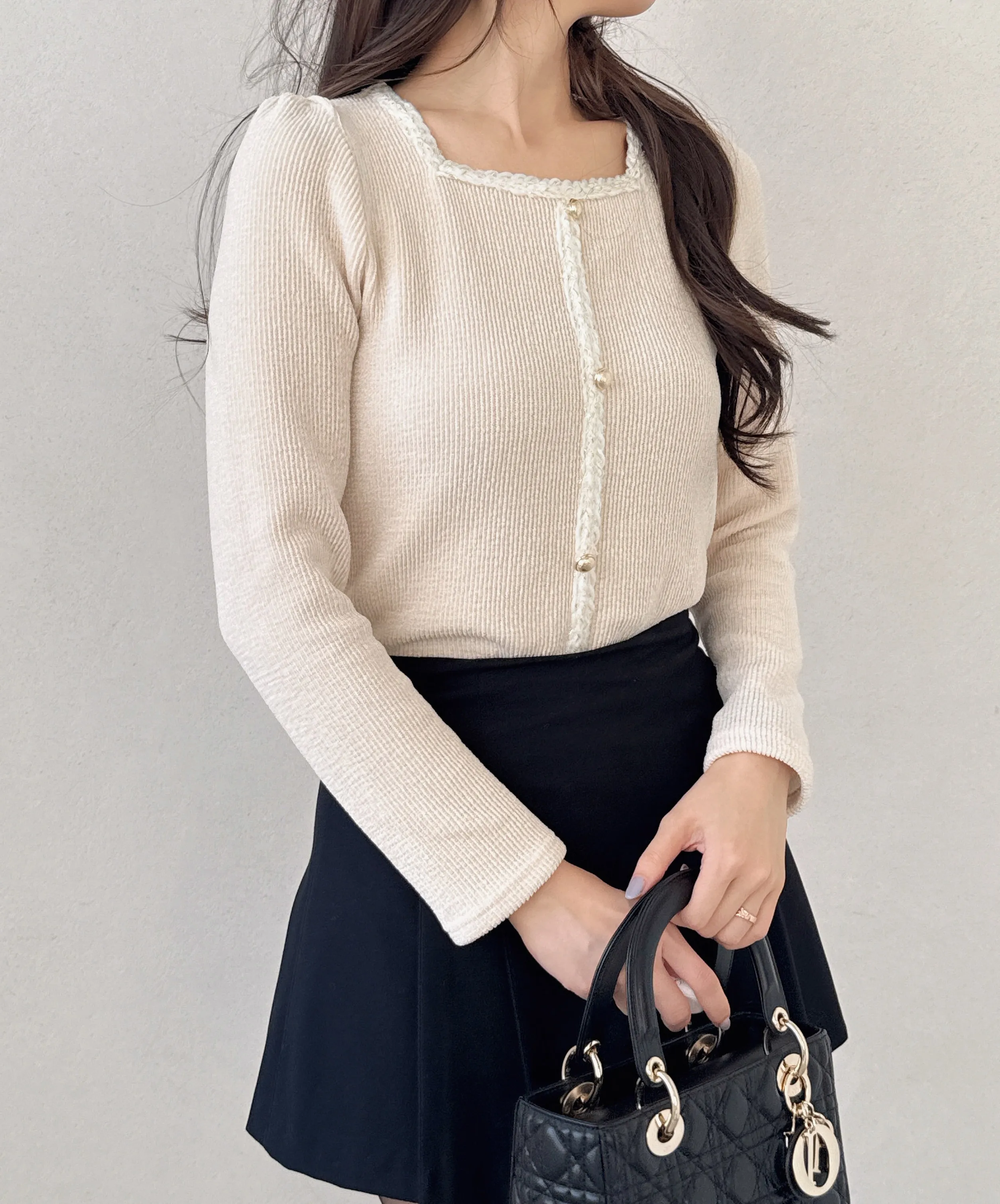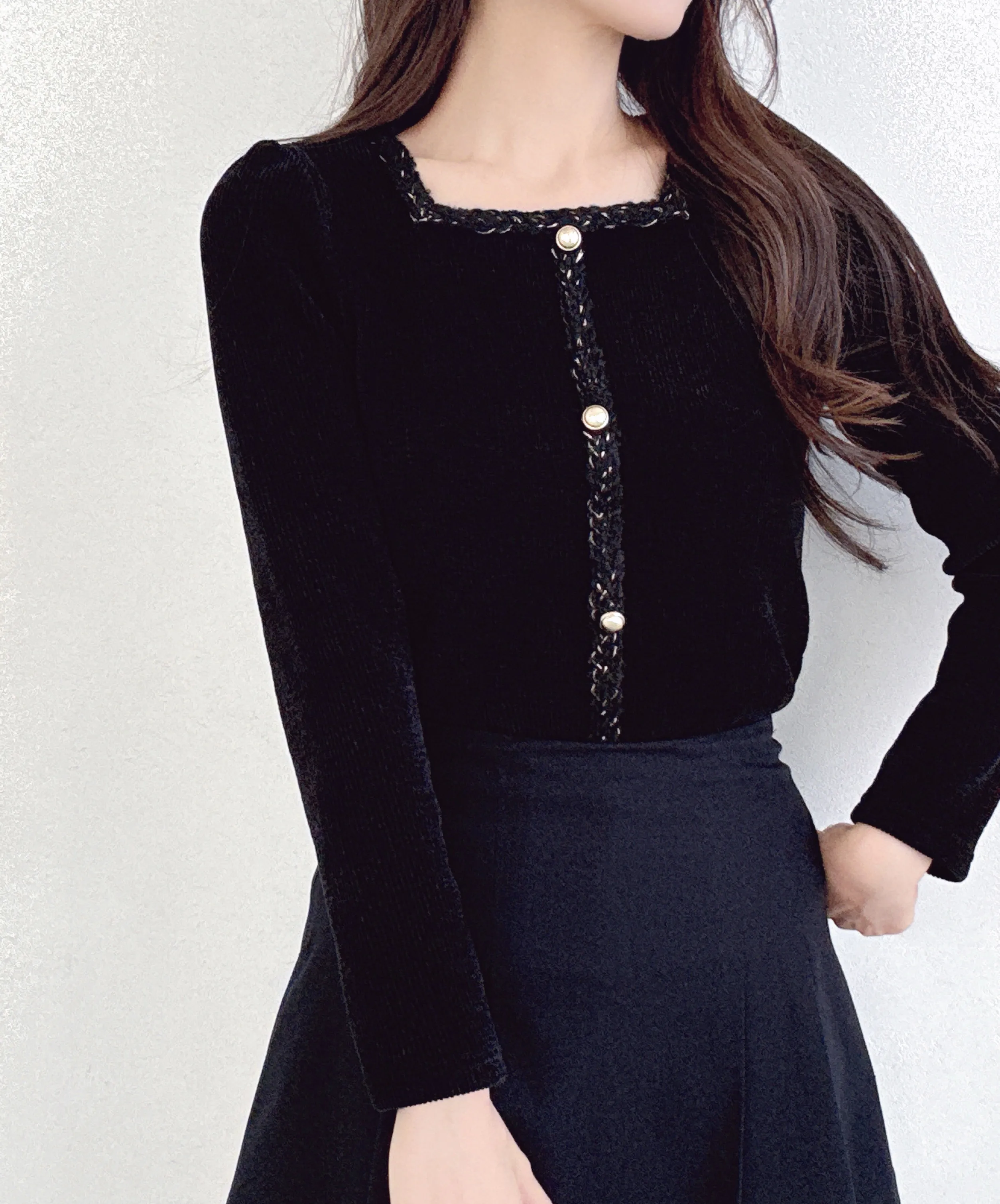 コンビスクエアネックスリム長袖フェイクボタンニット・B1950684