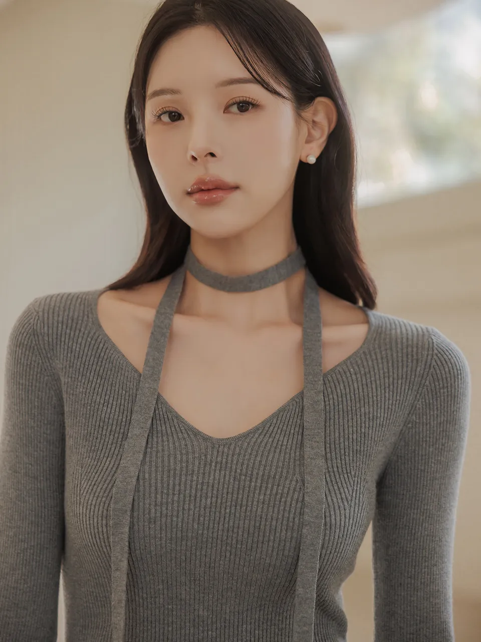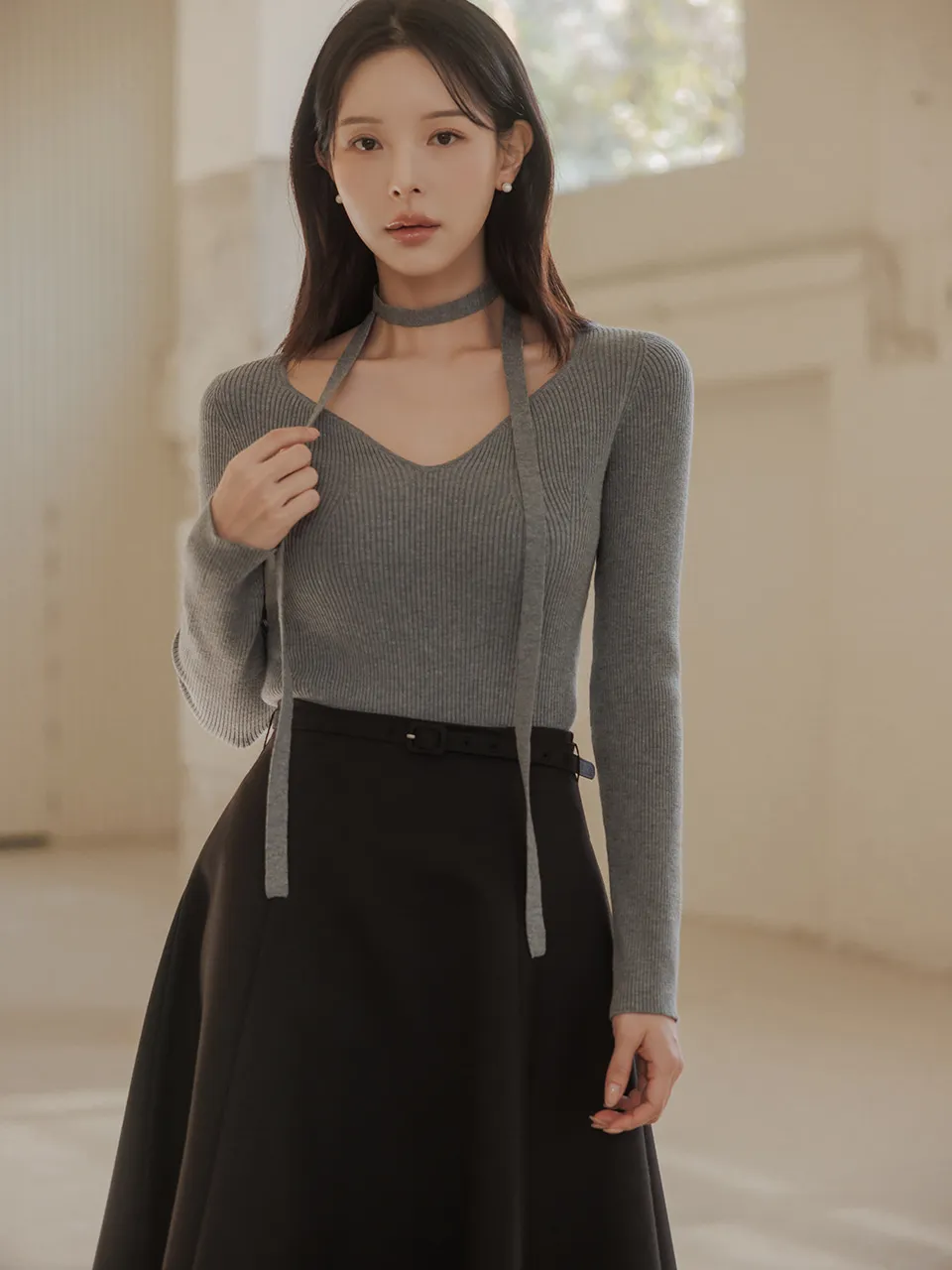 フェミニンなネックラインで優雅なネックラインと鎖骨ラインを演出