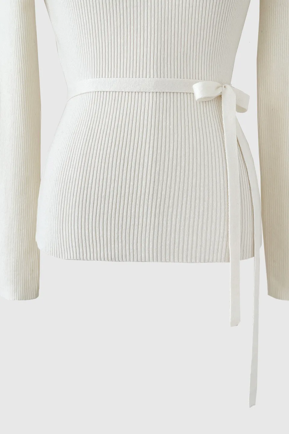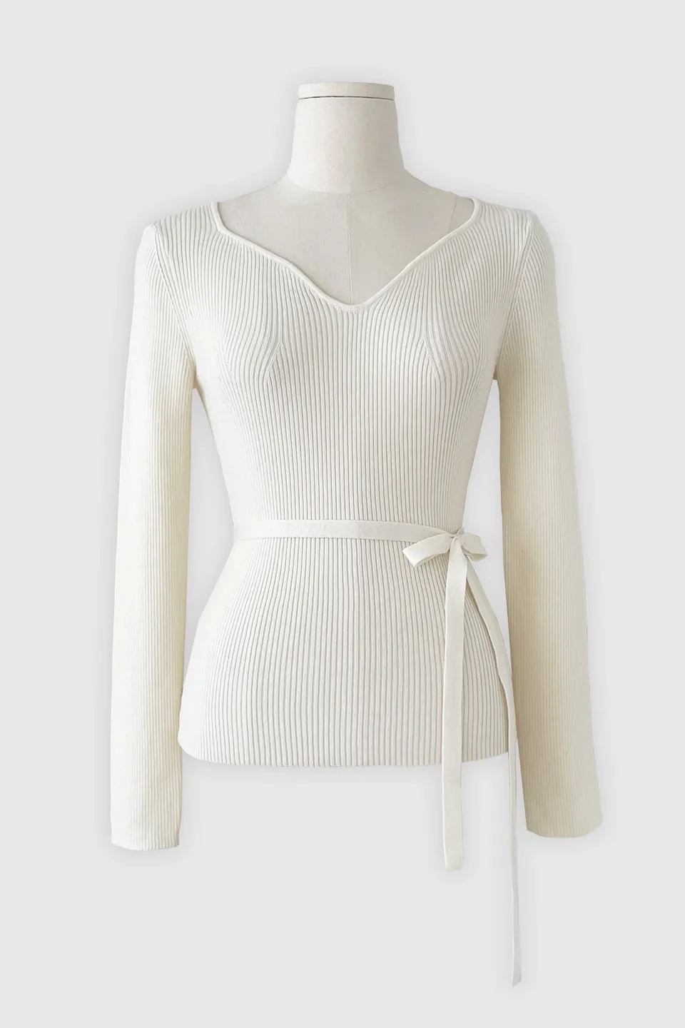 ユニークでフェミニンなネックラインとおしゃれなディテールが引き立つスリムフィットニットです。