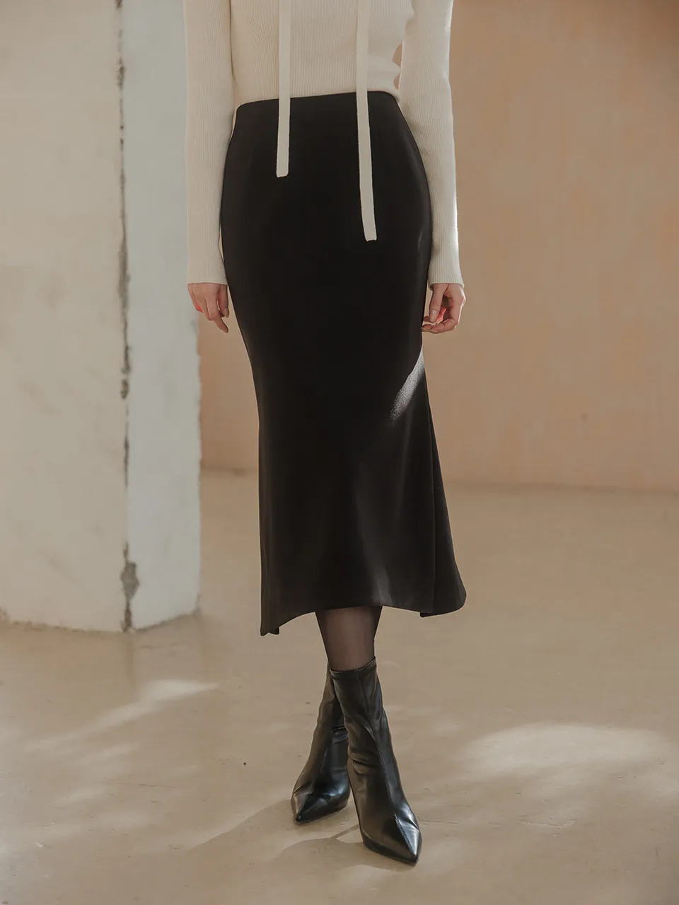 ボディーラインをスリムに包み込む女性らしいフィット感で美しいシルエット