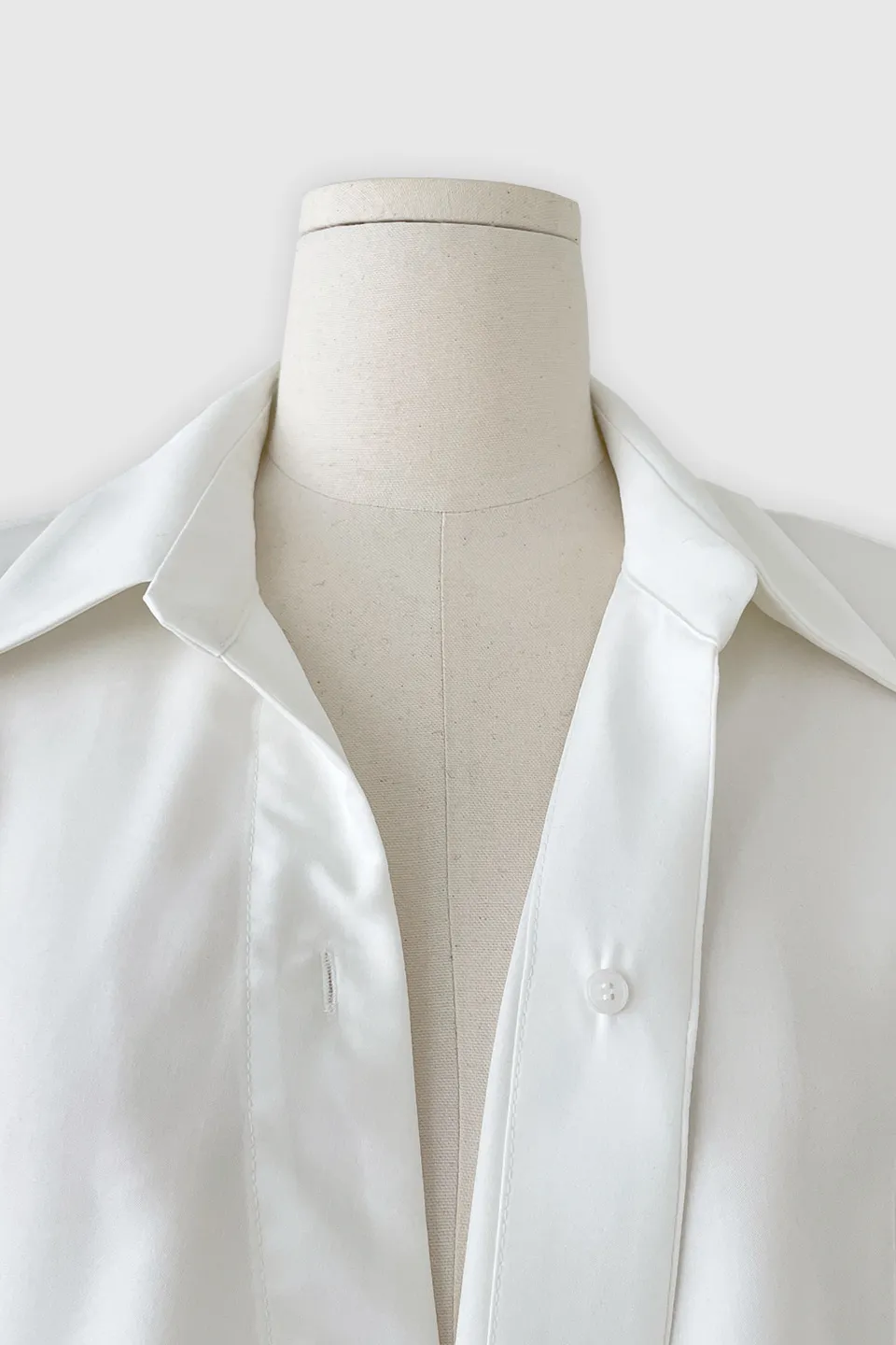 オープンカラーネックラインにボタンで固定し、露出の心配のない実用性