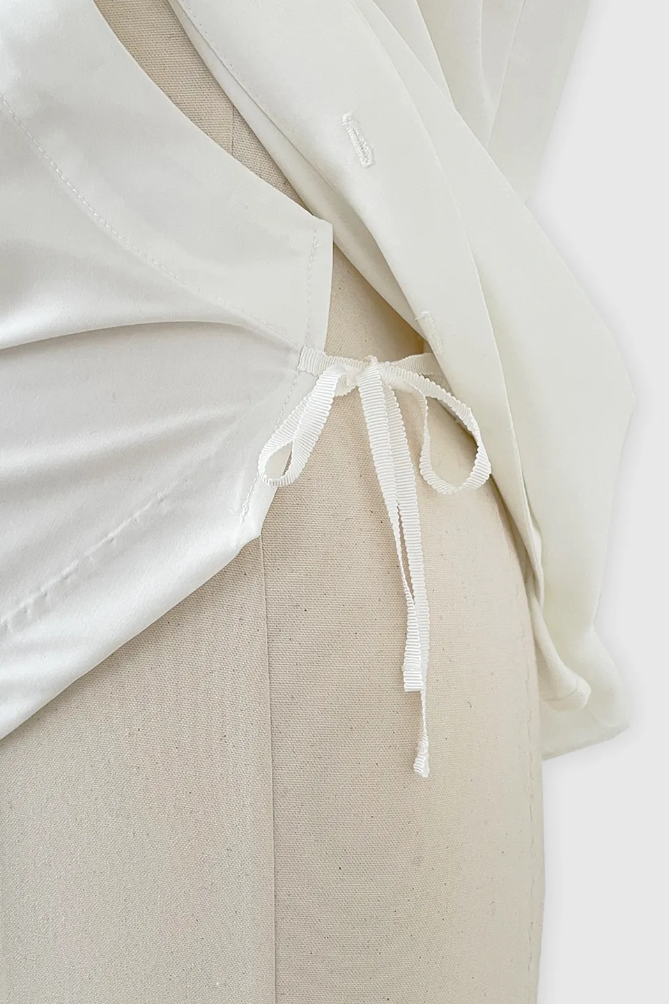 後ろのウエストラインにもシャーリングディテールで360度完璧なシルエット