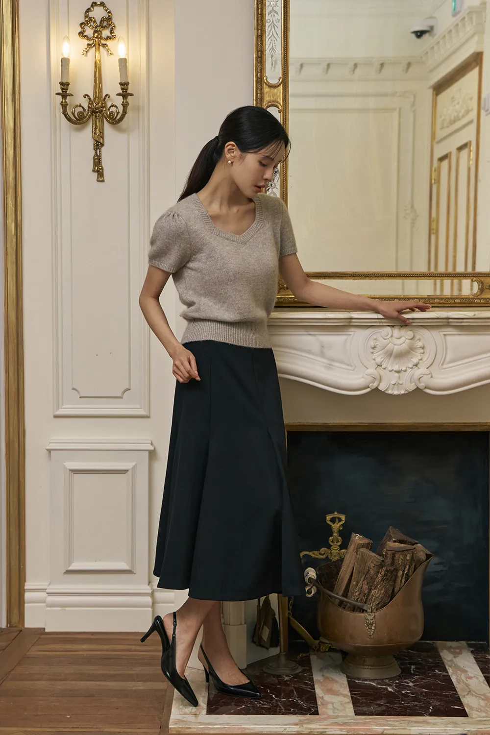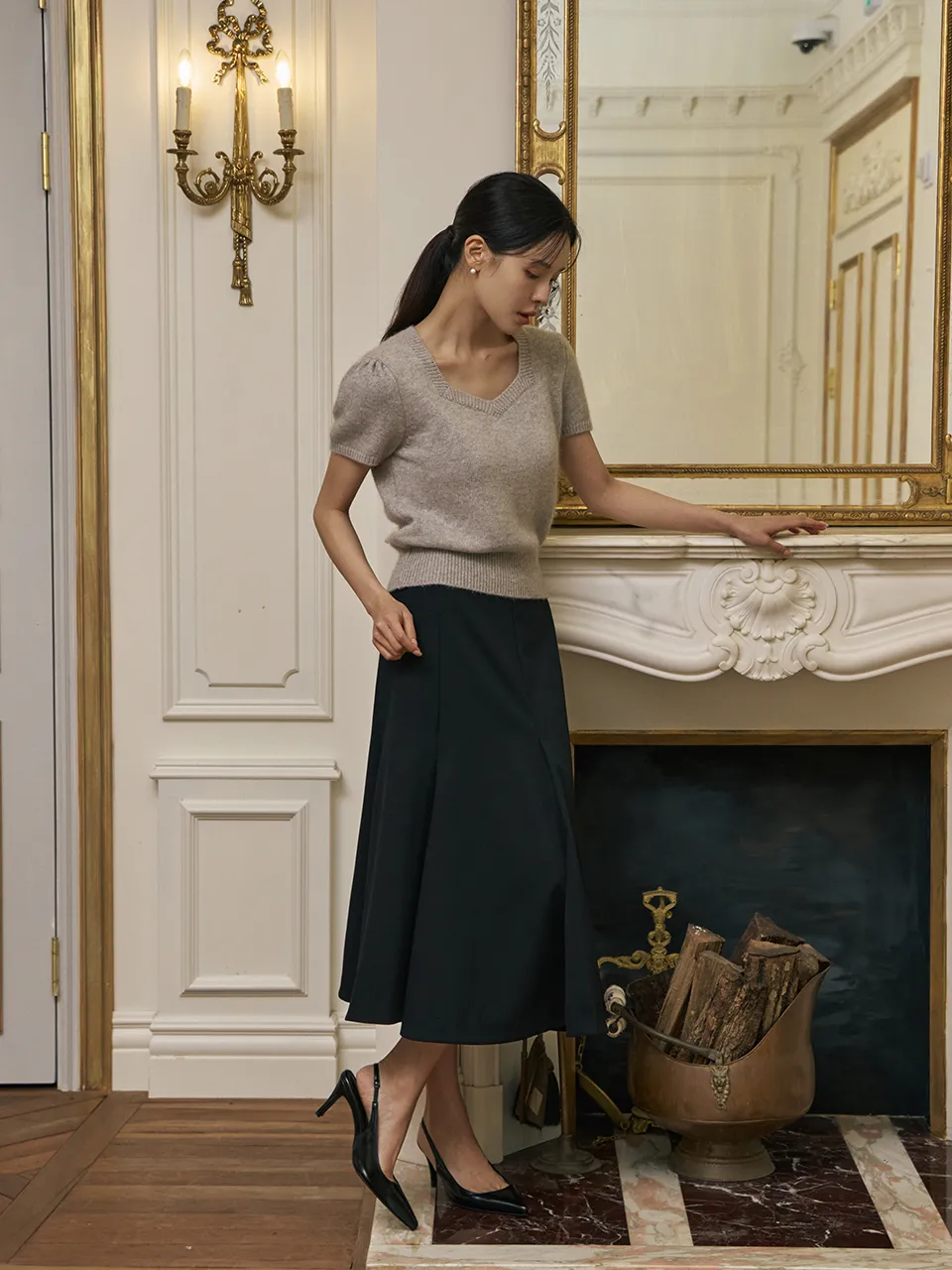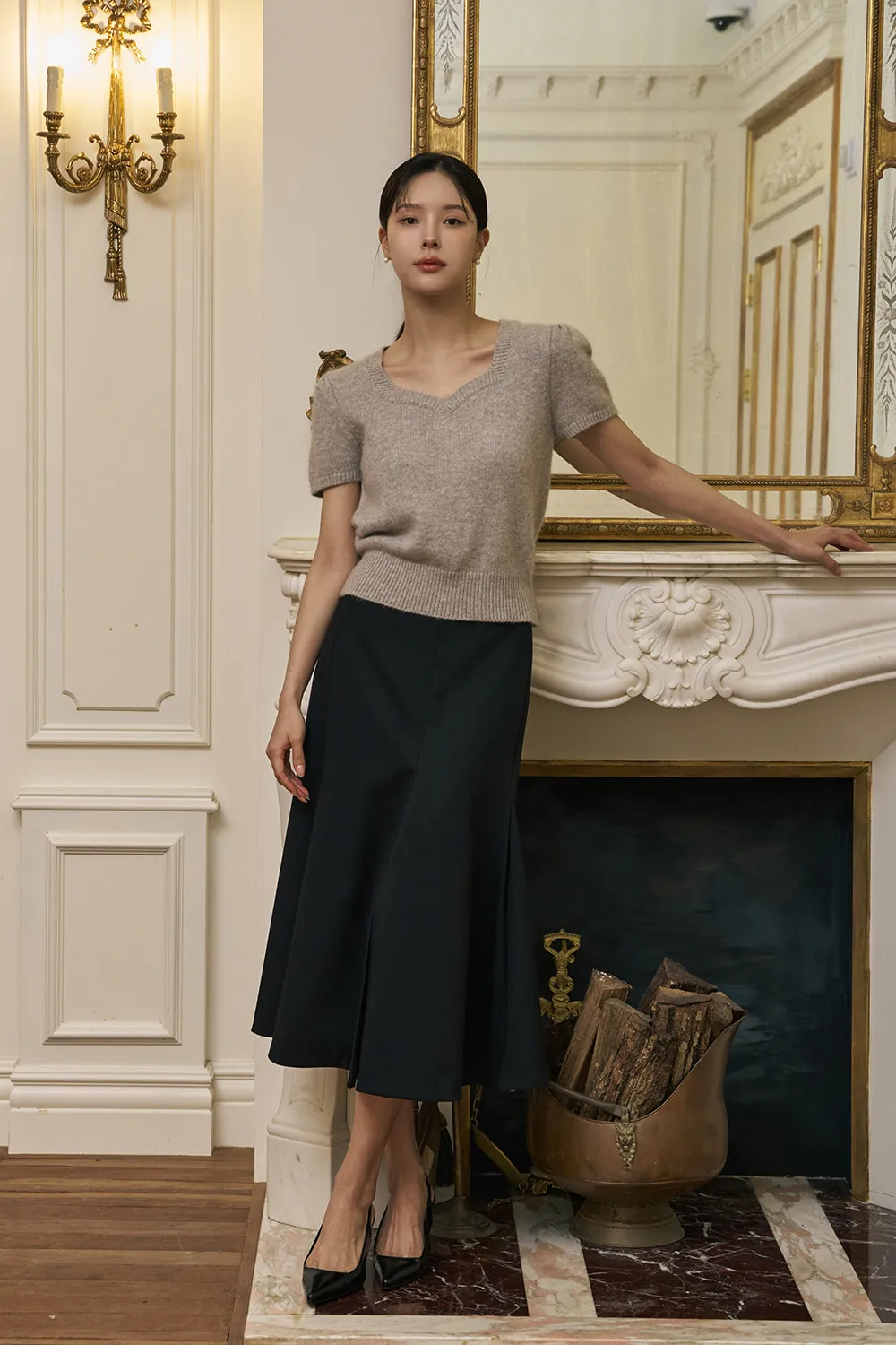 - フェミニンなハートネックラインで可愛らしくロマンチックなムードを演出