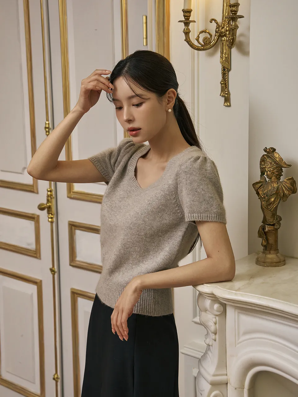 - ふんわりパフ袖で肩と腕のラインをナチュラルにカバーする効果