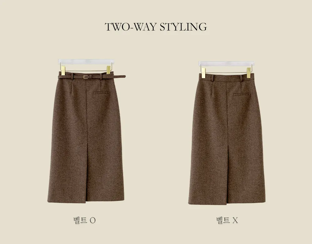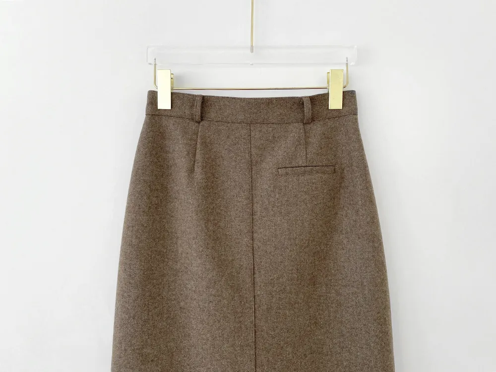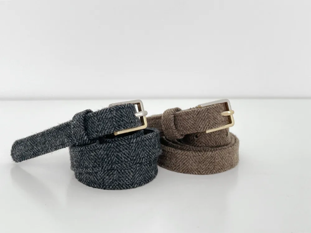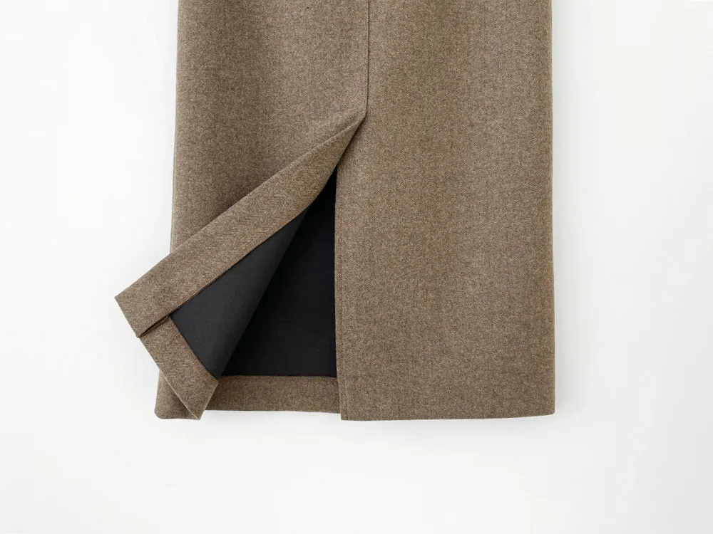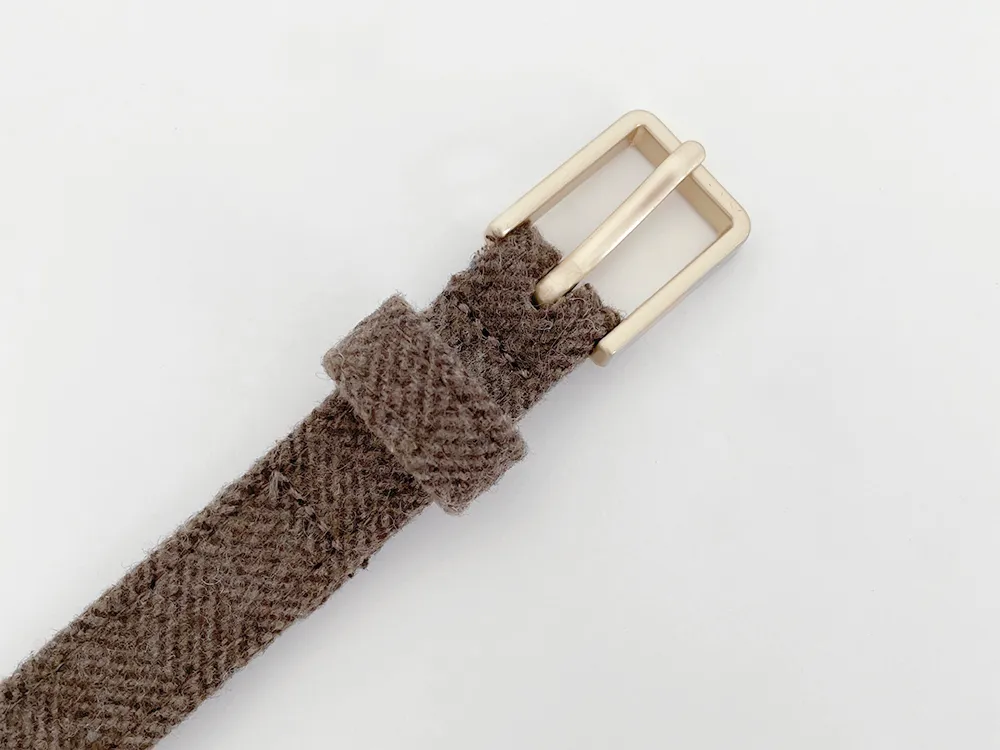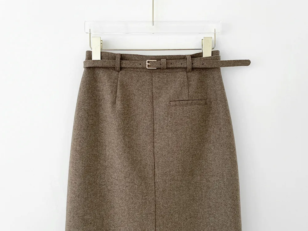 クラシックなヘリンボーンパターンとふんわりとしたウールのテクスチャーが引き立つHラインベルトスカートです。