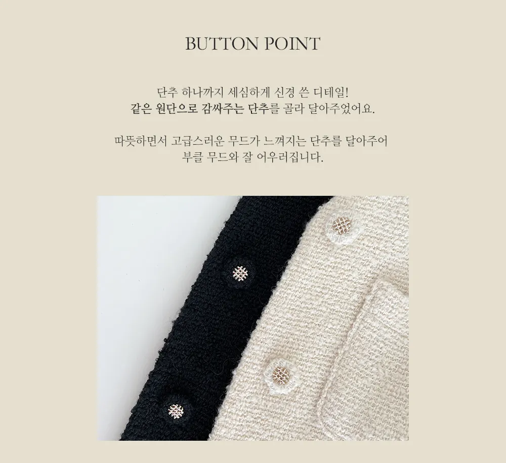 - 同じ生地のボタンにゴールドポイントでオシャレなディテールを完成