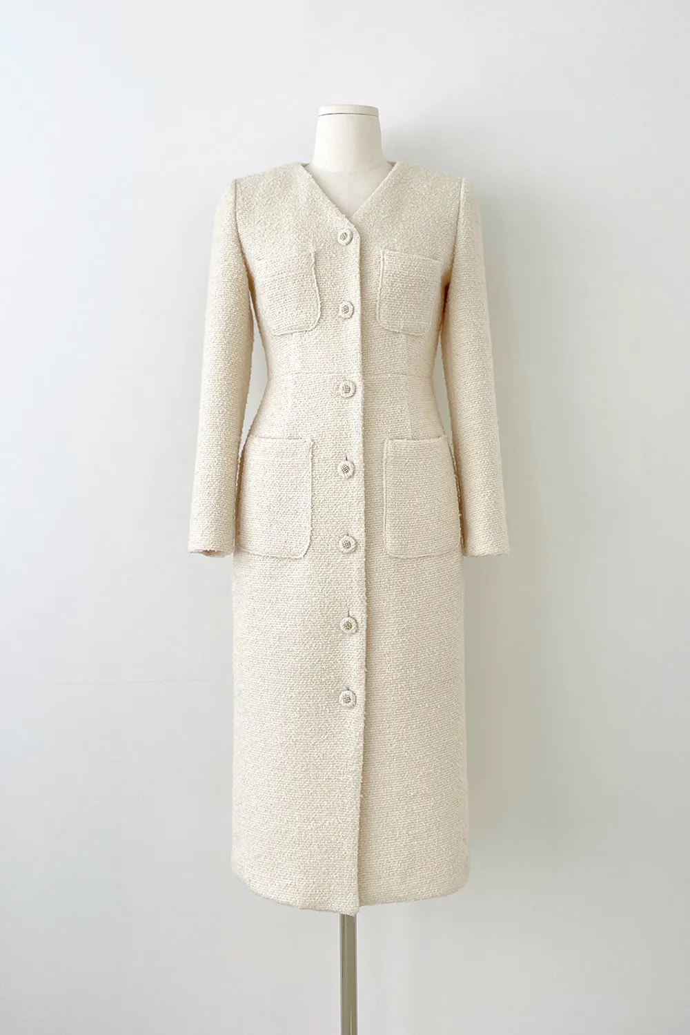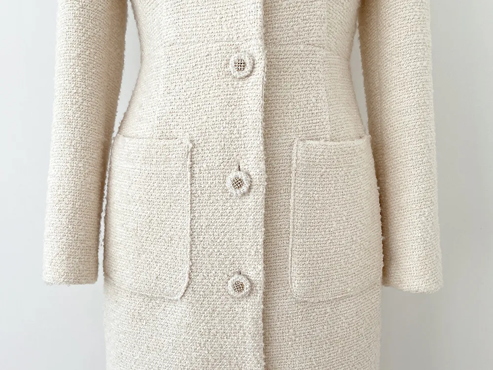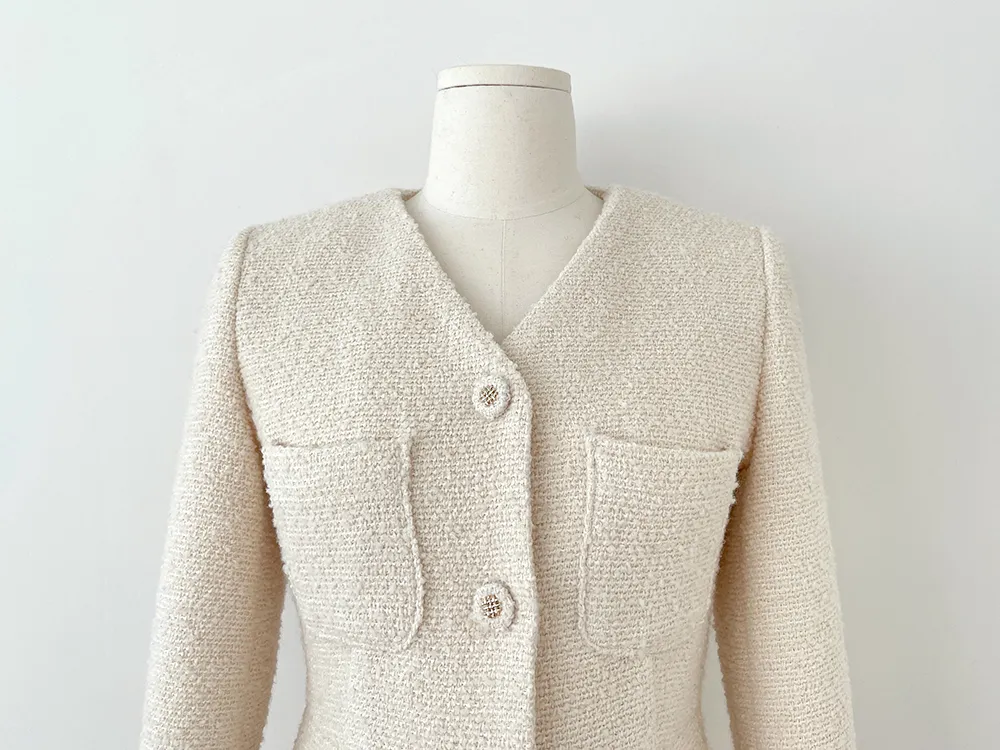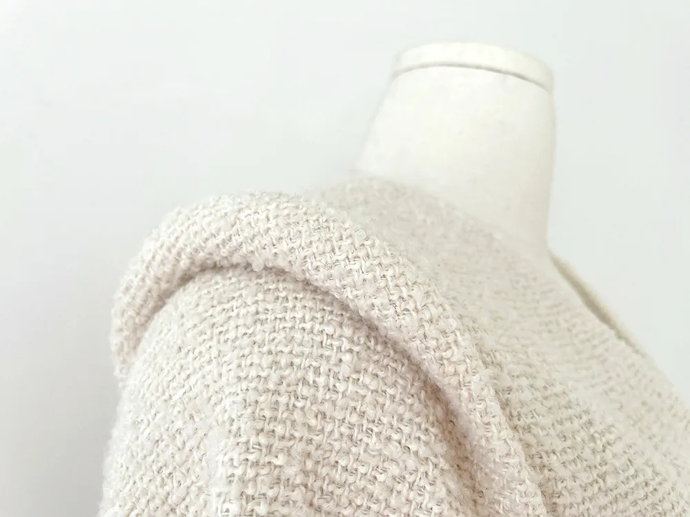 - ふわふわにアップされたブクルツイード生地で立体的なテクスチャーを演出