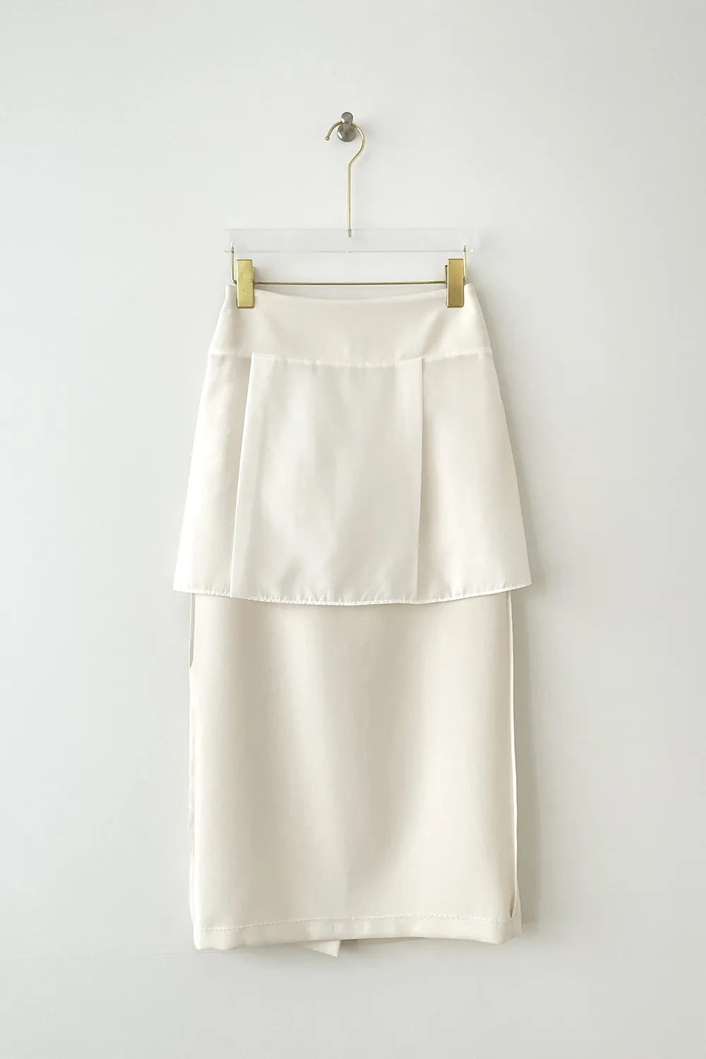 すっきりとしたデザインと完璧な比率補正が目立つマキシスカートです。