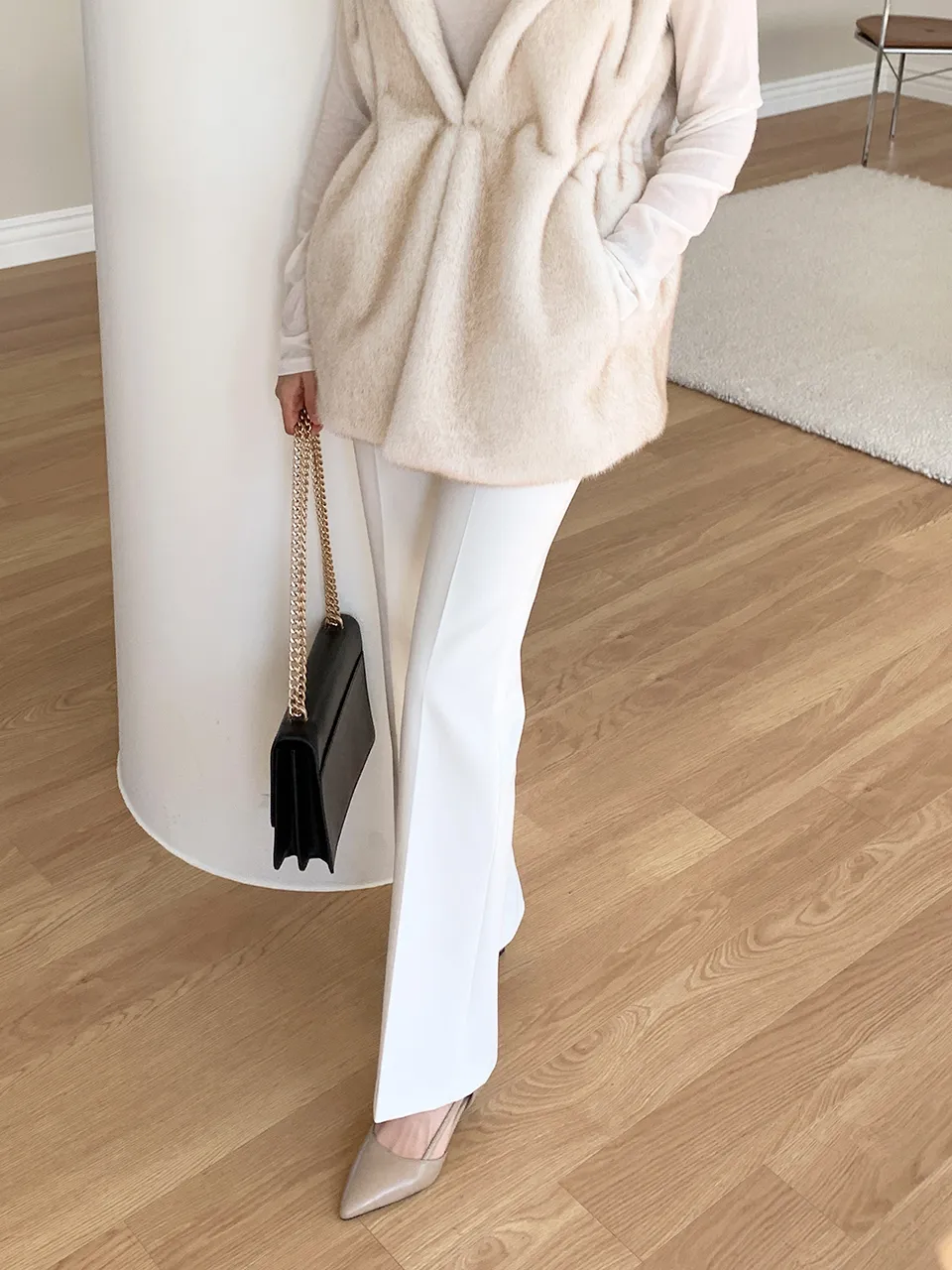 - ポケットなしですっきりとしたフィットのための横ファスナーオープンクロージングデザイン