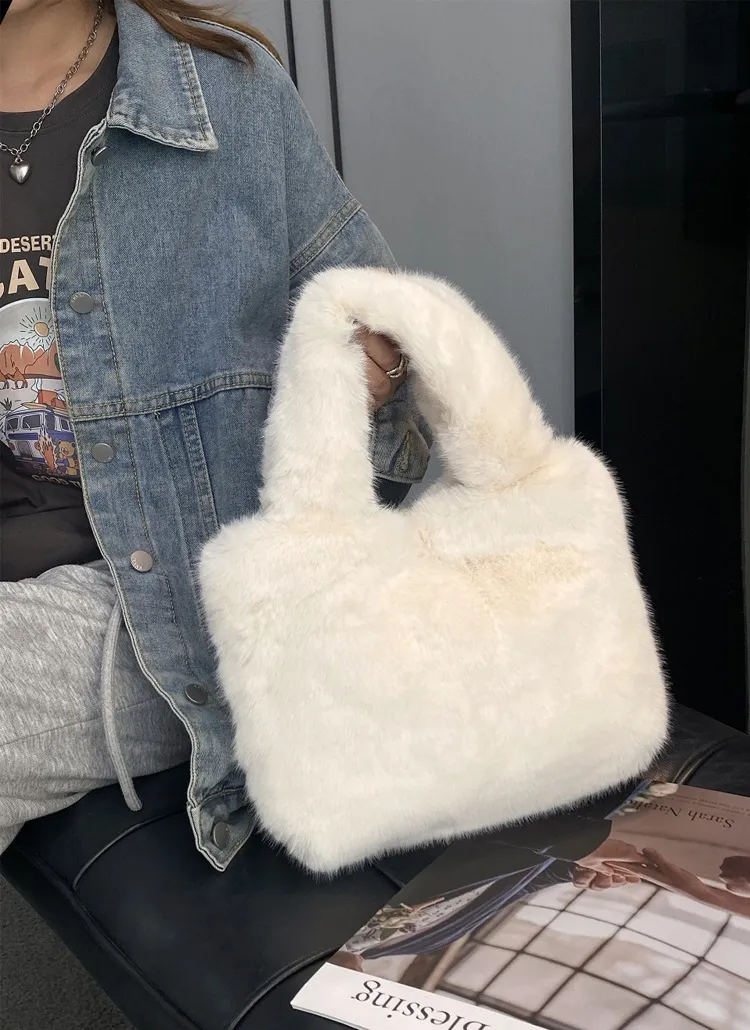 ミニバッグチャーム付ハンドメイドニットハンドバッグ