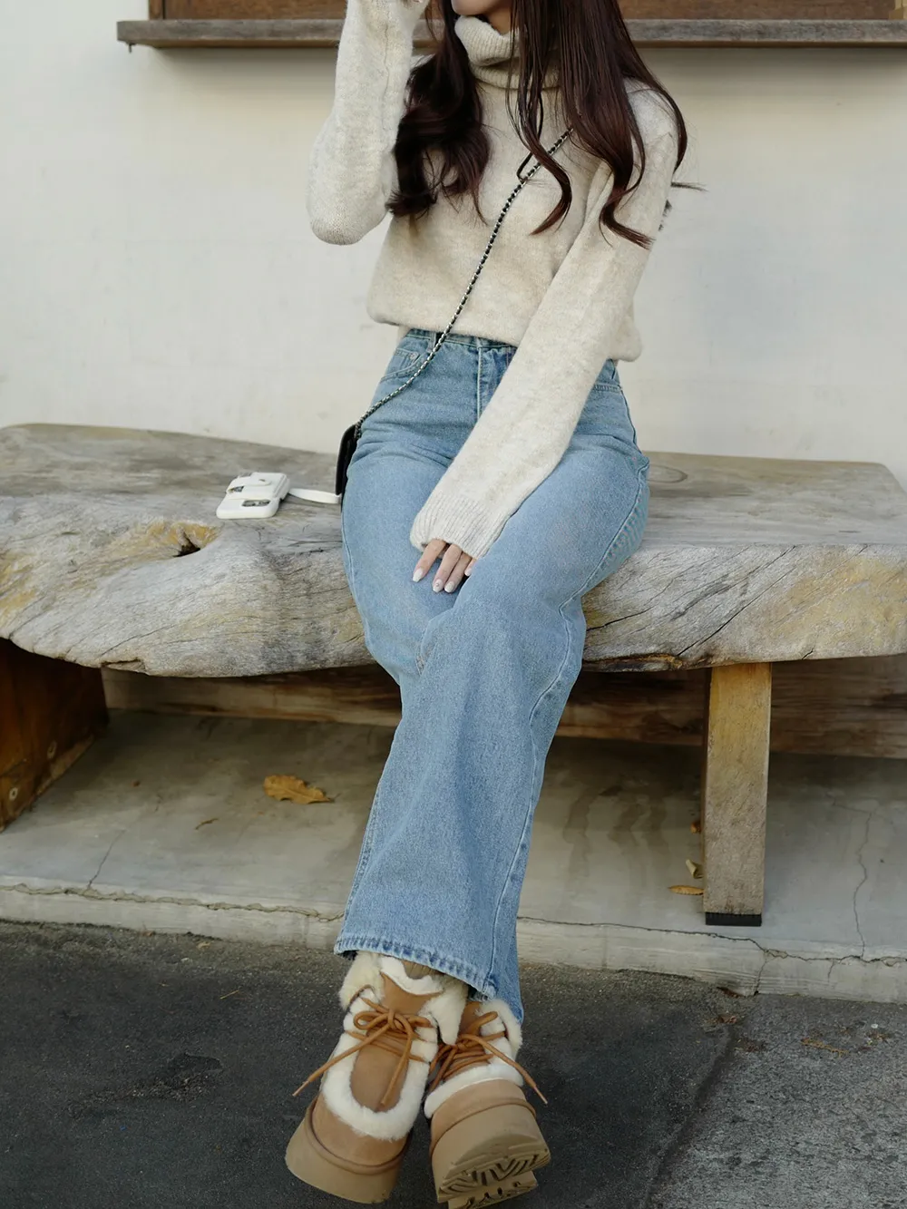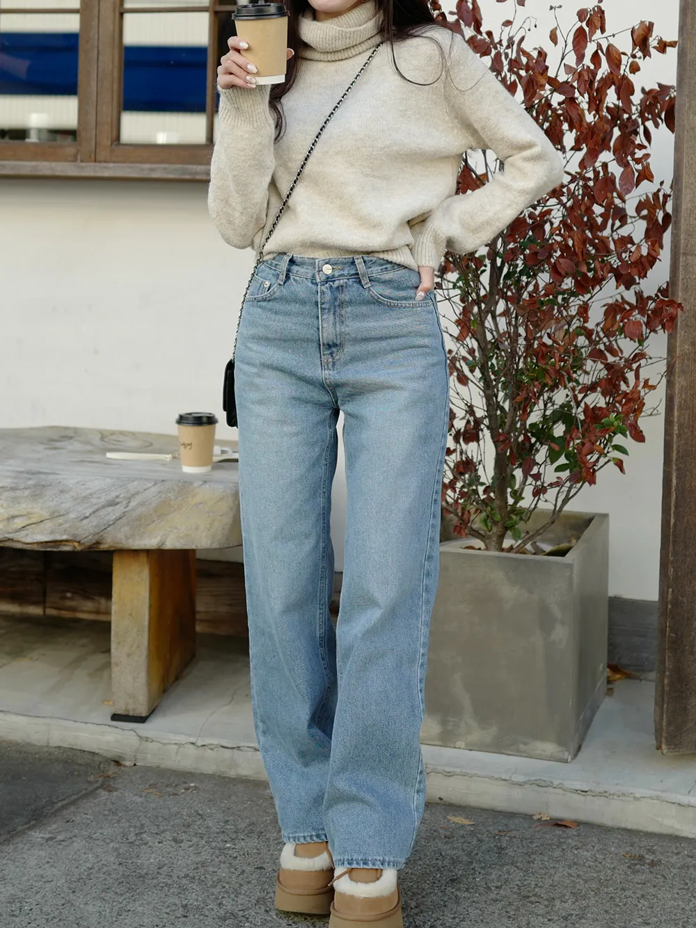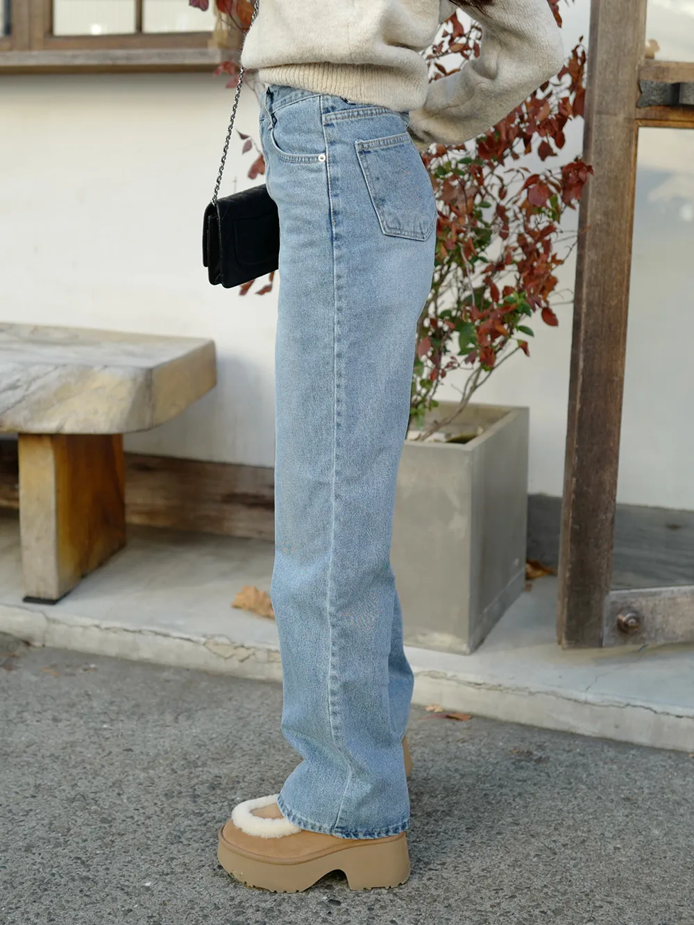 脚のラインを細く長く見せてくれるデニムです。