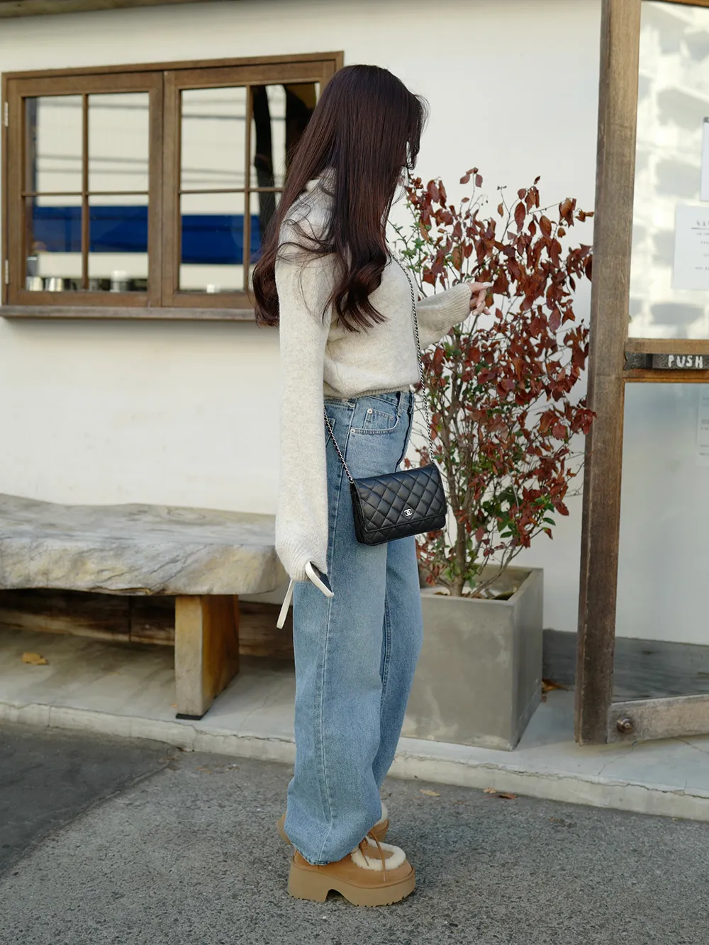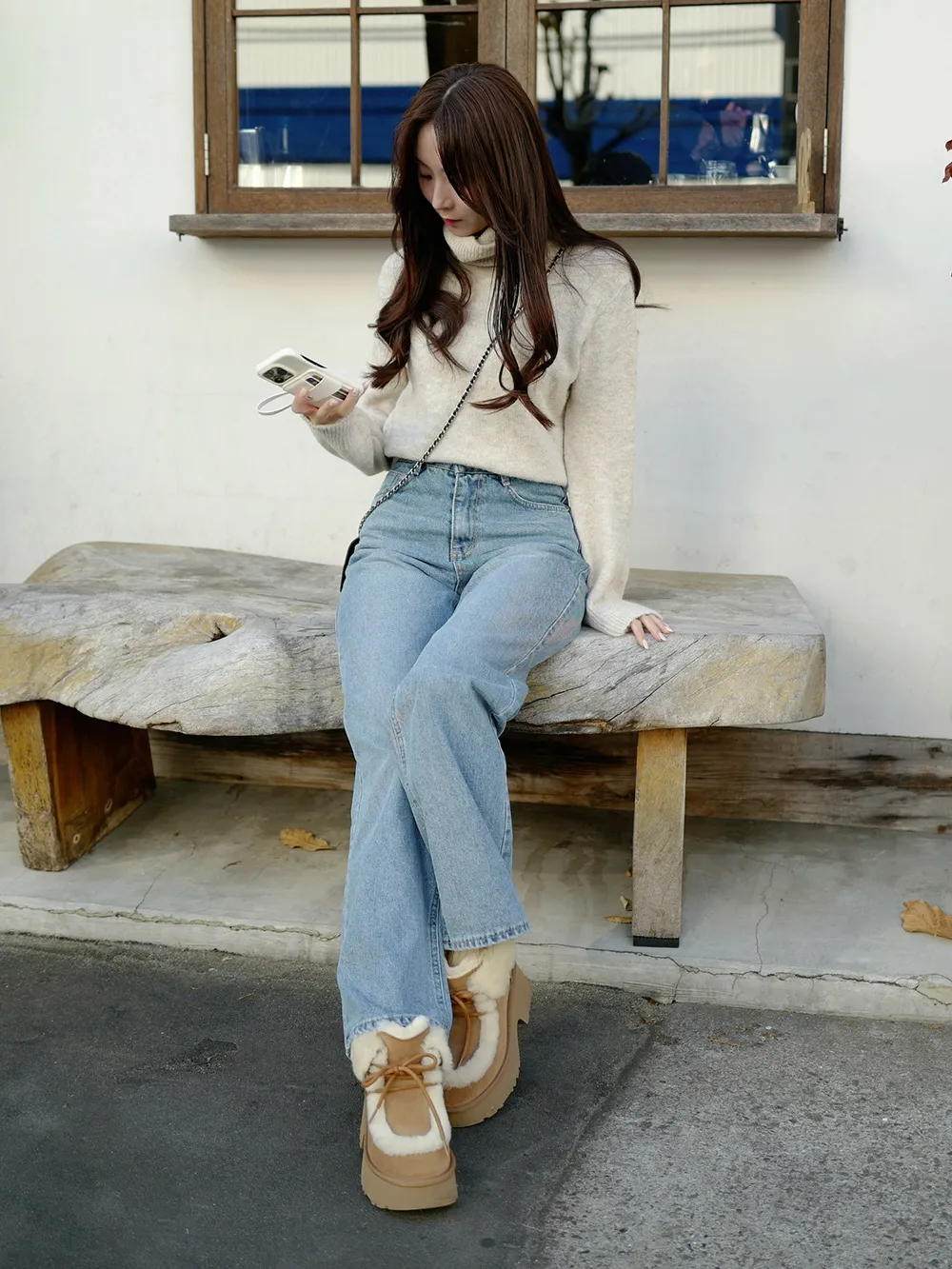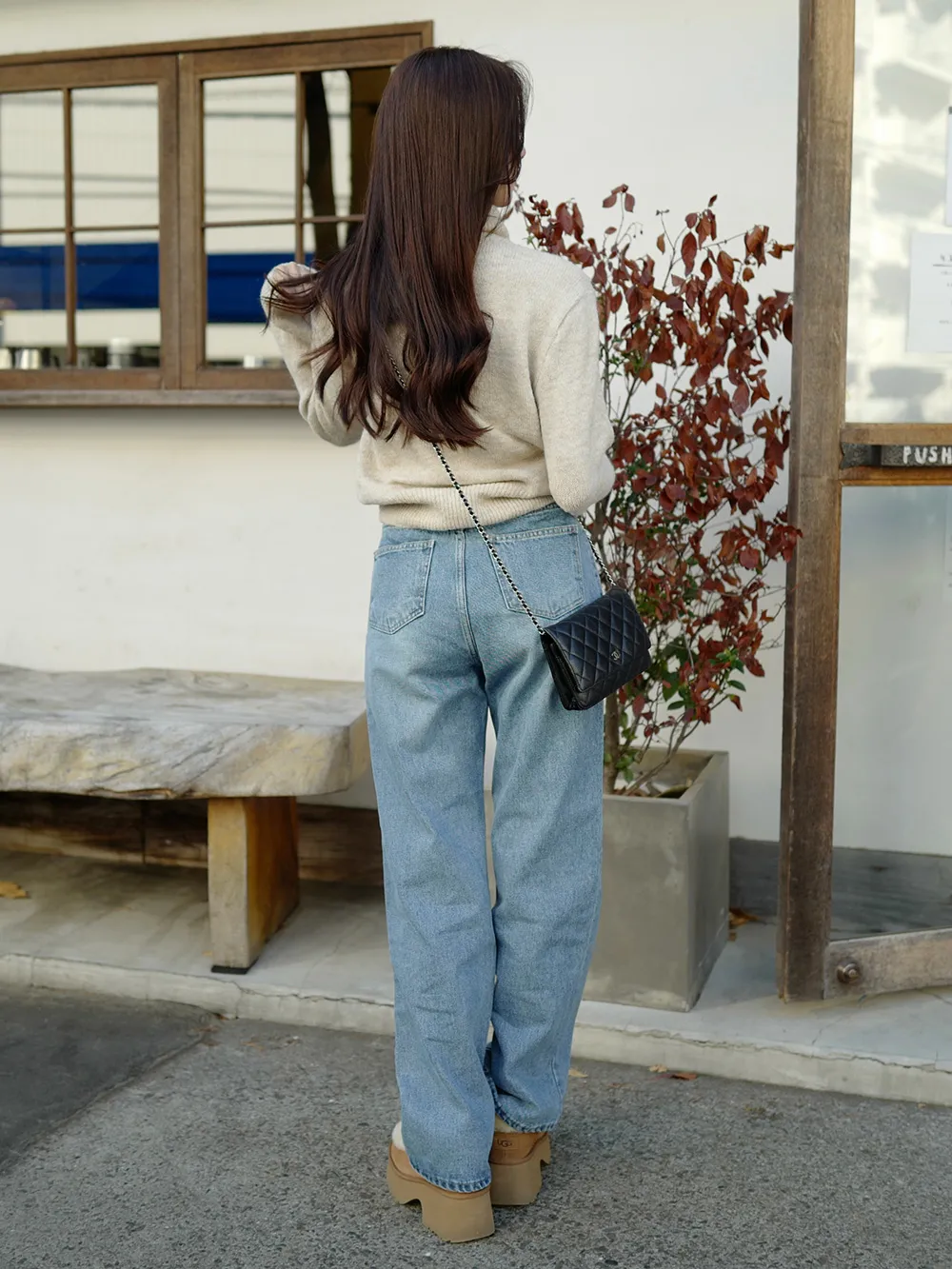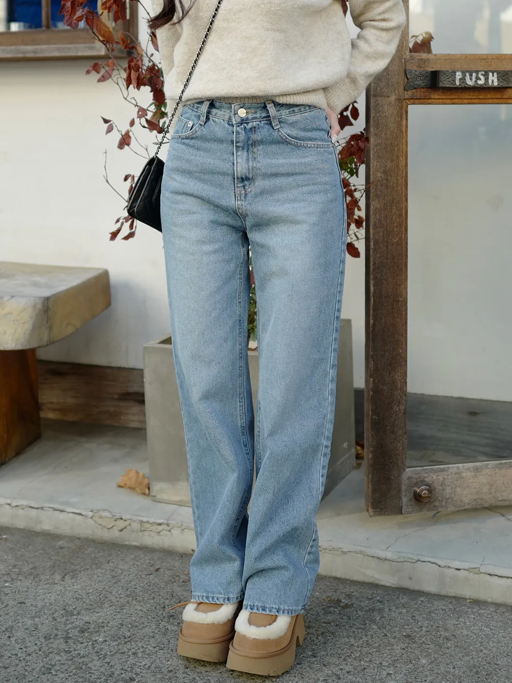 脚のラインを細く長く見せてくれるデニムです。