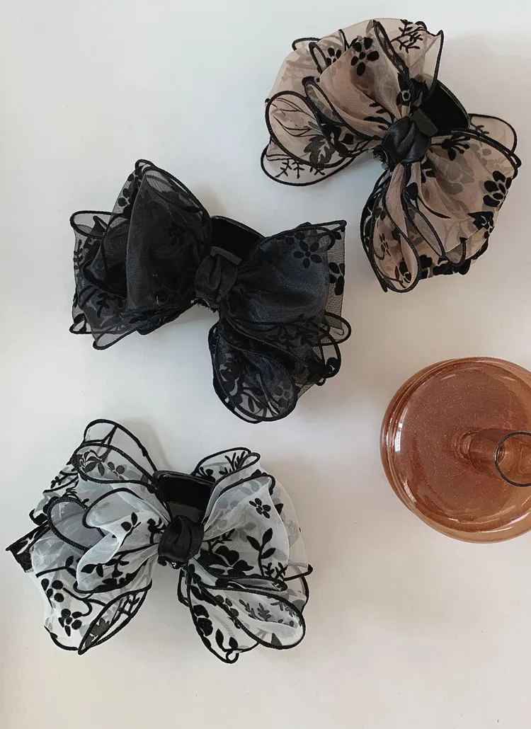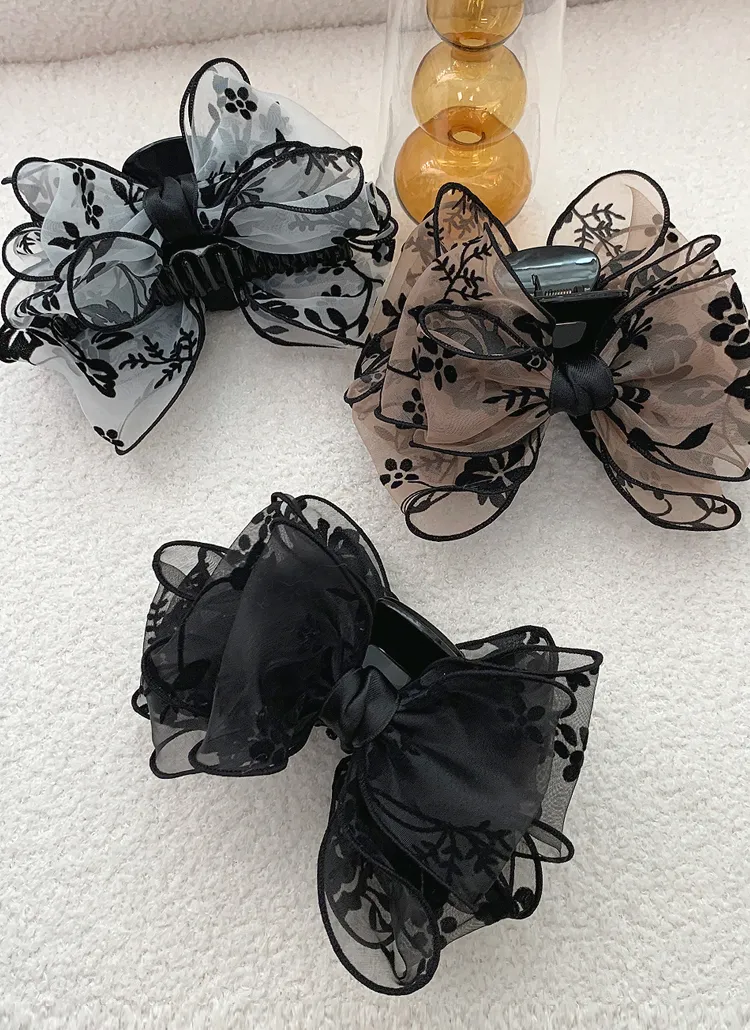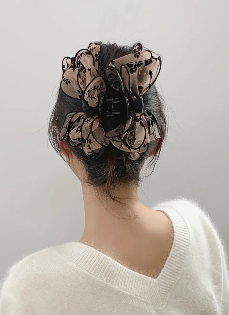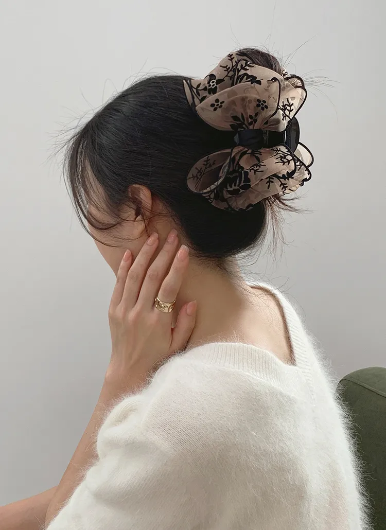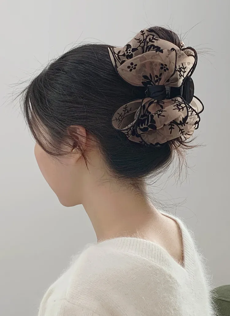ベロアリボンビッグ花柄バンスクリップ・S1951310