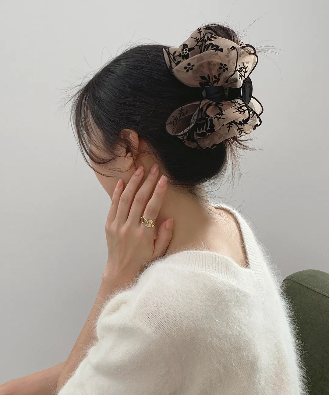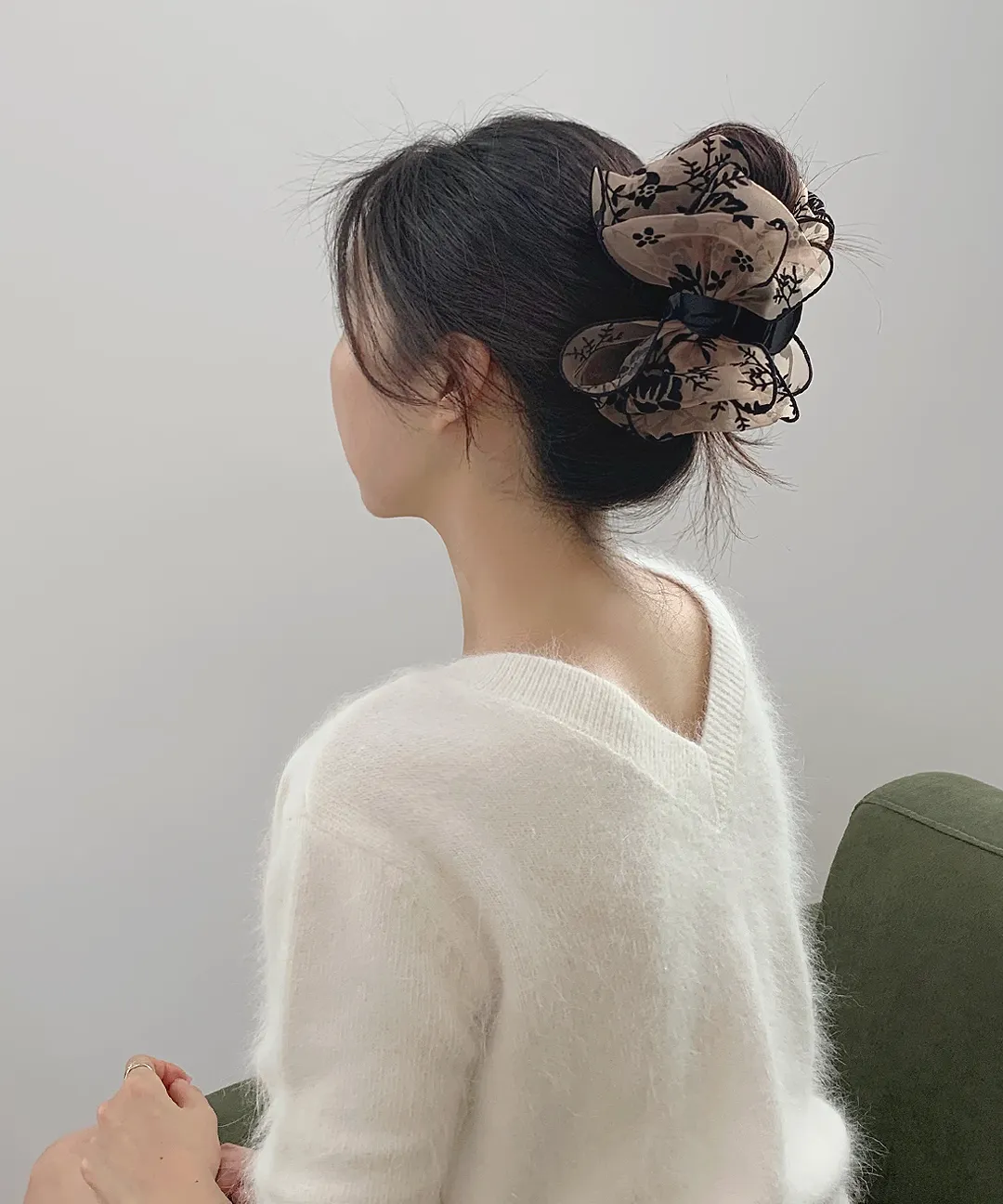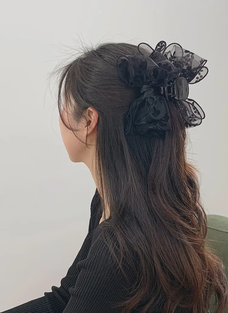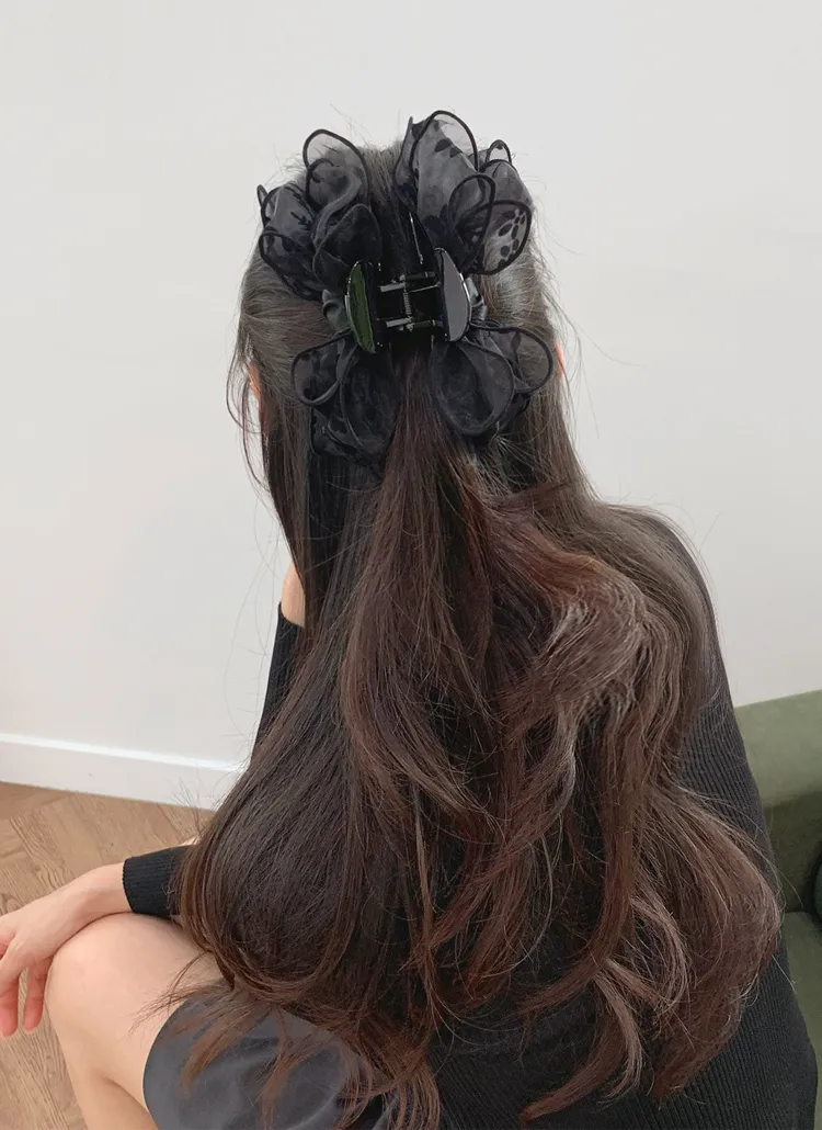 ベロアリボンビッグ花柄バンスクリップ・S1951310