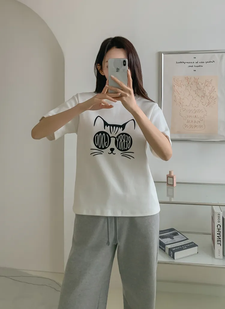 ラウンドネック半袖プリントTシャツ・B1951348