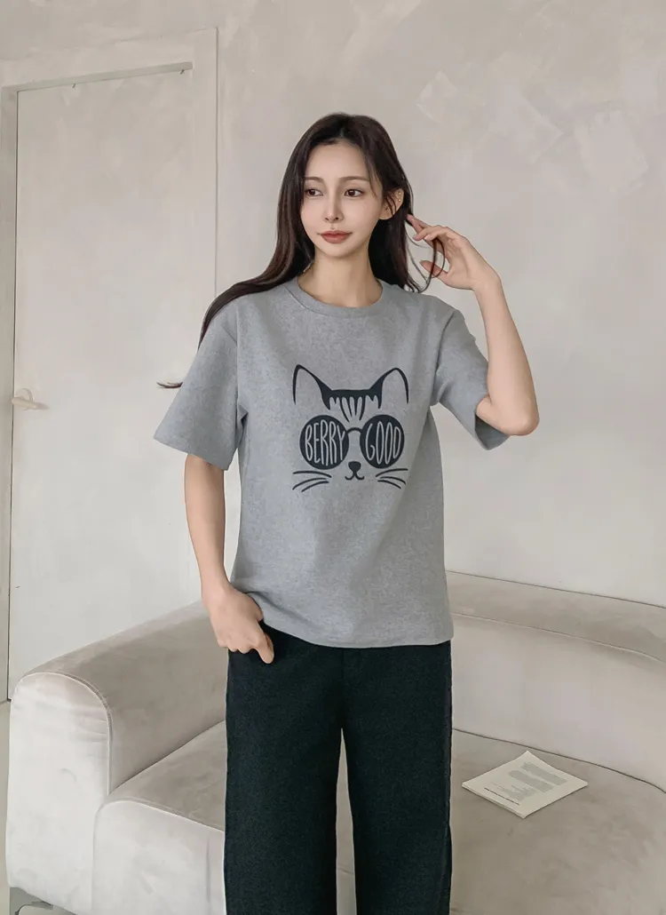 起毛ピーチ起毛半袖ベーシックルーズプリントTシャツ