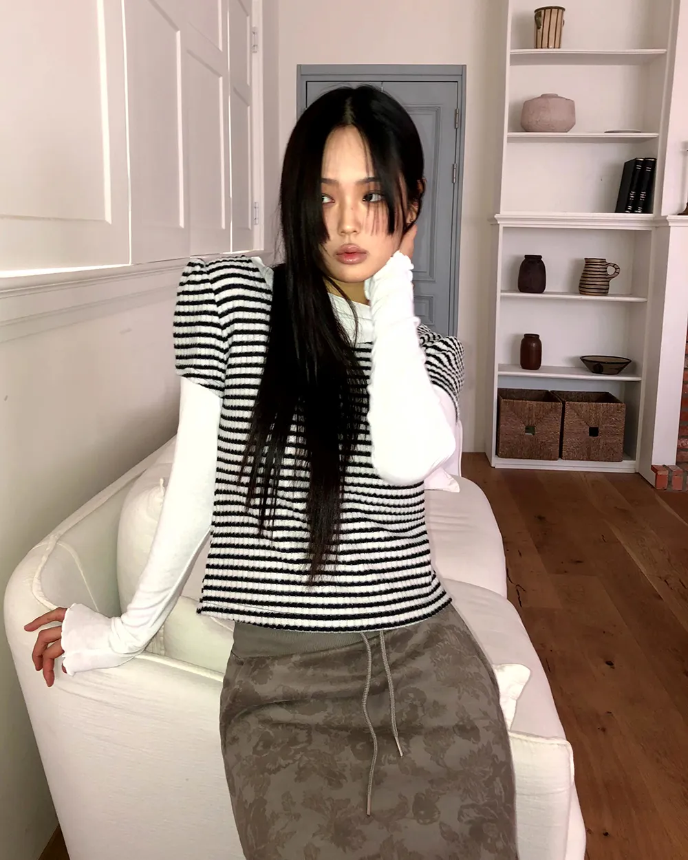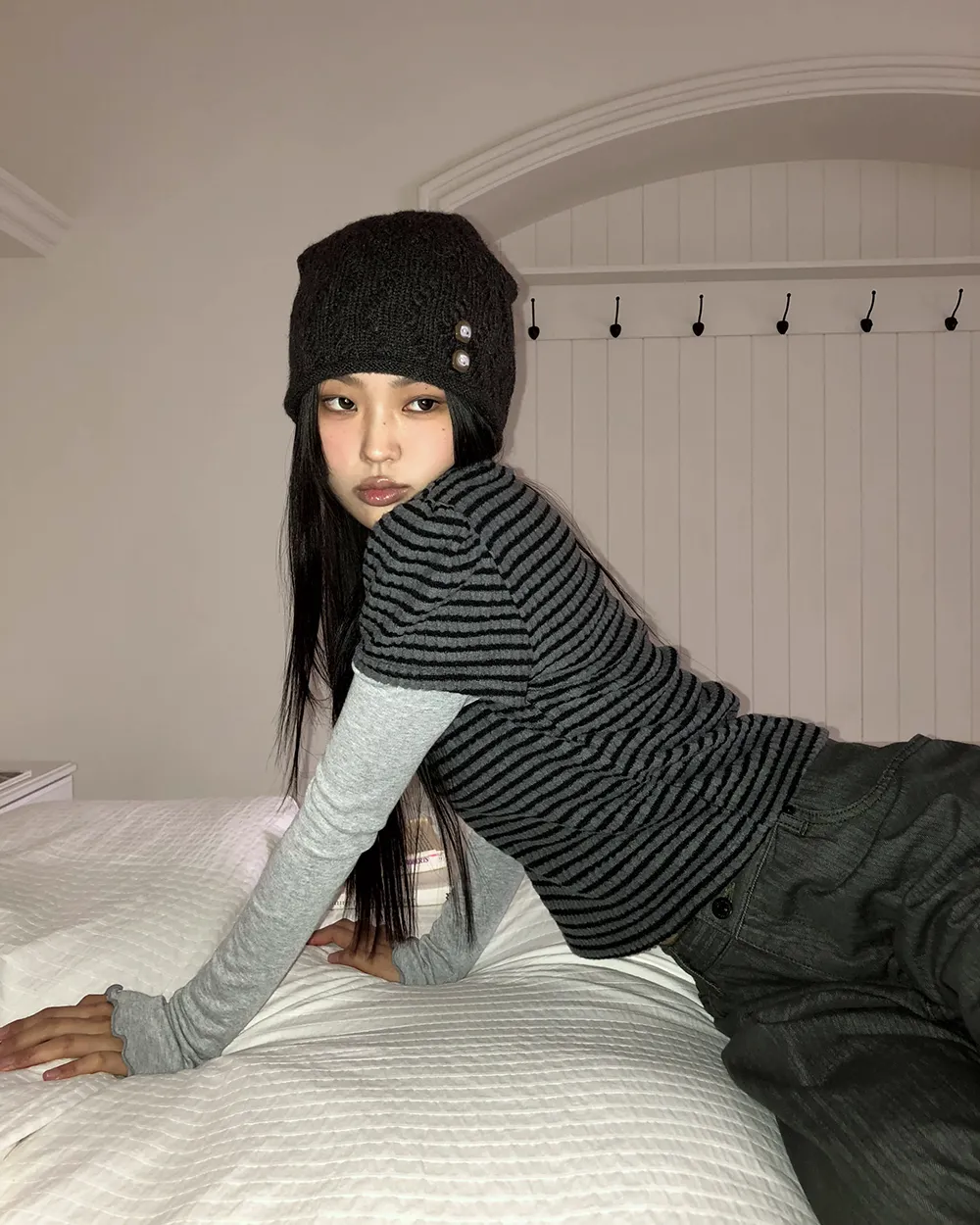 着用 : ブラックグレー / FREE,アイボリー / FREE